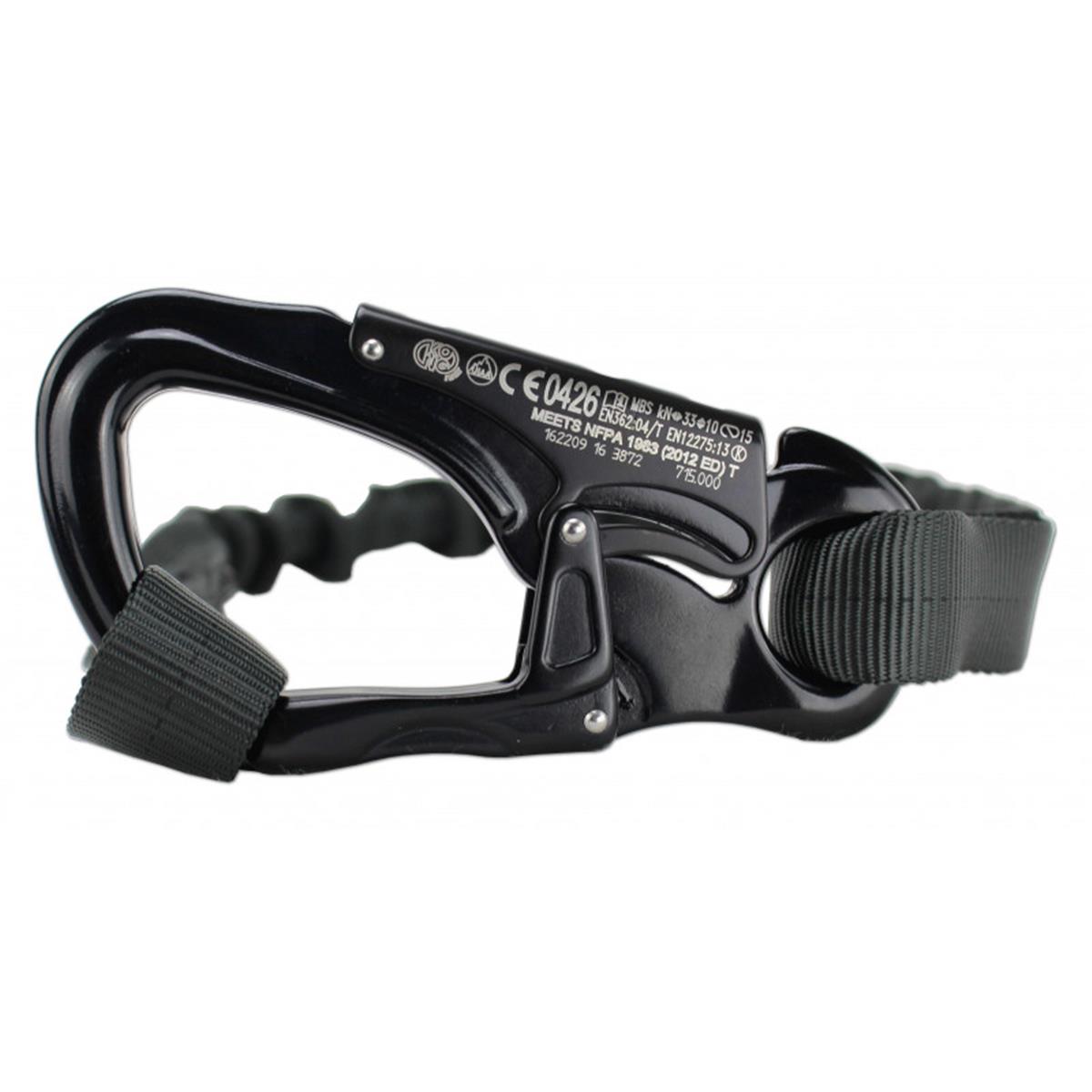 Der Karabiner bietet ein hohes Maß an Sicherheit, da er eine Verschlusssicherung nach EN 362 gegen unbeabsichtigtes Öffnen besitzt. Die Sicherung wird durch Druck außer Kraft gesetzt und der Karabiner kann entfernt oder umgesetzt werden. Der Karabiner hat eine Bruchlast von 33kN nach EN362-04 und ist nach DIN EN 12275 K für die einhändige Bedienung ausgelegt und zertifiziert (CE und UIAA).