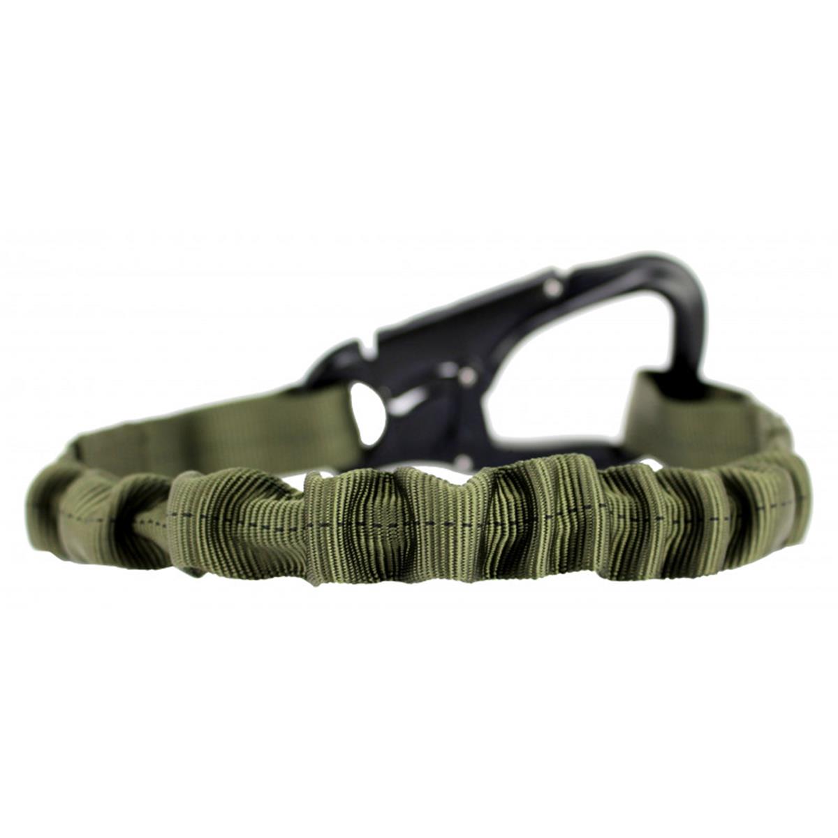 Das Mittelstück besteht aus einer elastischen Seele und einem Schlauchband.Im Normalzustand hat der Lanyard eine Länge von ca. 55cm (der Gurt) und verlängert sich im gedehnten Zustand auf eine Länge von ca. 75 cm. Die Schlaufen am jeweiligen Ende sind mit 9 Riegeln ausgeführt.Das Tubular Gurtband ist nach der Milspec - Mil-W-5625K ausgeführt und aus deutscher Herstellung mit einer Höchstzuglast von 2000 kg.Die Schlaufe am Ende des Tango Lanyards dient zur Befestigung an den am Körper befindlichen Tragesystemen.