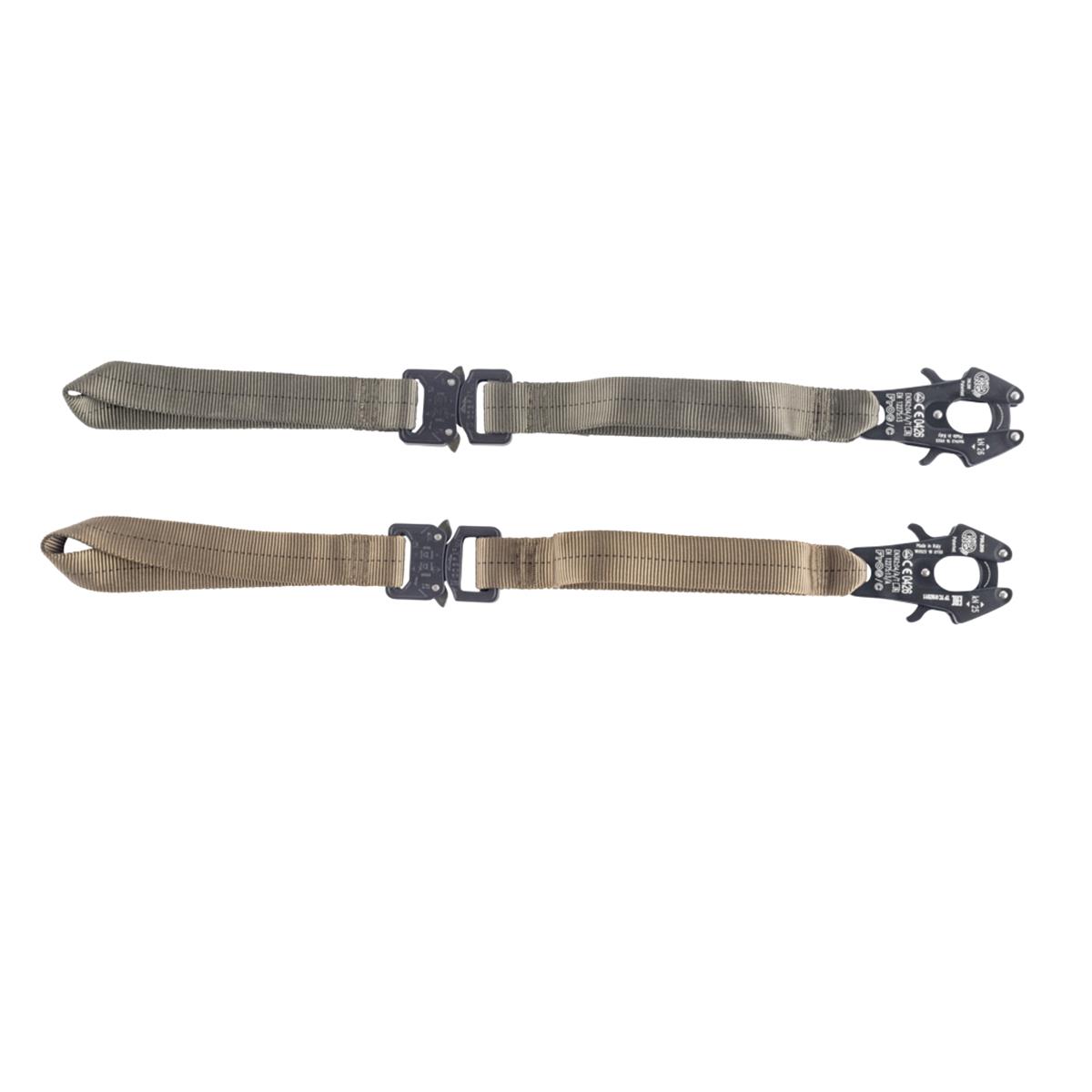 Die obere Handschlaufe kann im Ankerstich direkt am Gürtel befestigt, oder an einem separaten Karabiner / D-Ring angeschlagen werden.