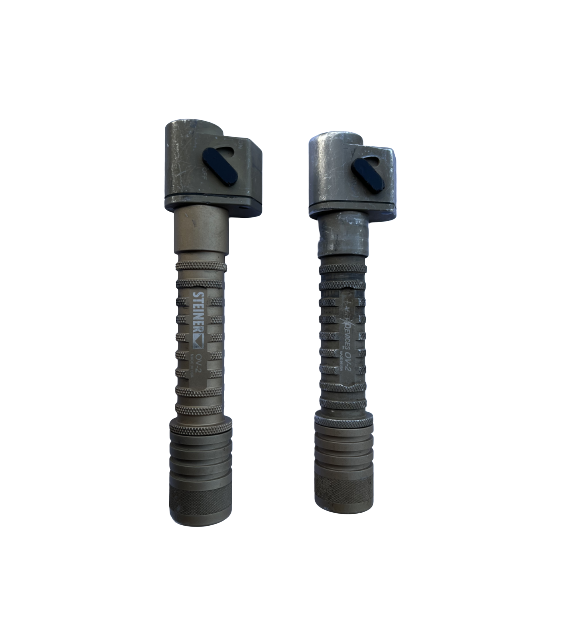 Die Original Steiner Laser Device Operative OV-2 Tactical Flash Light von Morovision ist eine leistungsstarke und präzise taktische Lampe in einem kompakten und leichten Paket mit der Vielseitigkeit, die für jede Situation benötigt wird. Diese Taschenlampe im Taschenformat bietet die Lichtleistung größerer Taschenlampen bei einem Bruchteil von deren Größe und Gewicht. Hierbei handelt es sich um Gebrauchtware aus dänischen Armeebeständen.