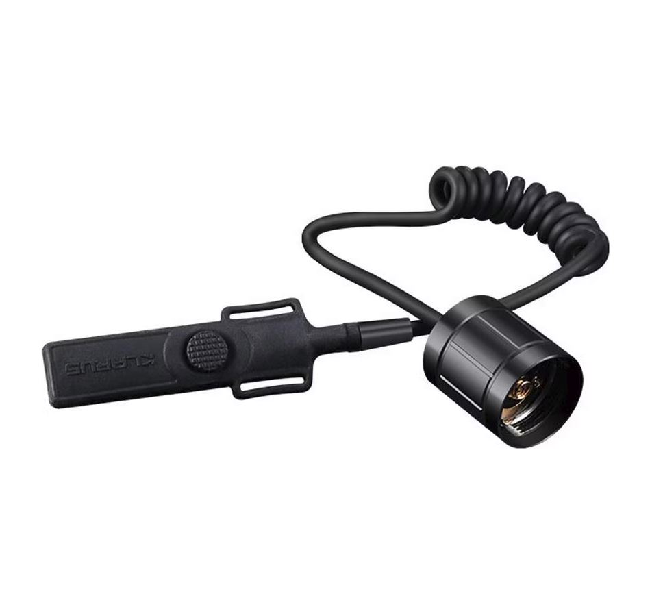 Die Fernbedienung wird per Kabel mit der Lampe verbunden und lässt sich sauber am Griff, an der Waffe oder an taktischer Ausrüstung positionieren. Die robuste Ausführung ist auf rauen Gebrauch ausgelegt und sorgt für zuverlässige Funktion auch unter schwierigen Bedingungen.