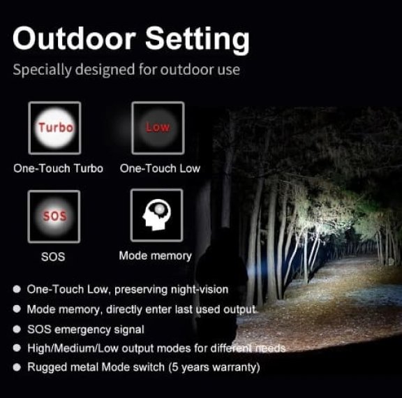 Leuchtmodi: Turbo, High, Medium, Low, Strobe