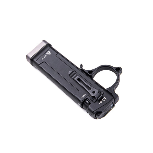 Das flache Gehäuse aus Aluminiumlegierung bietet eine sichere Handhabung und gute Führbarkeit. Eine integrierte taktische Fangring unterstützt die Kontrolle der Lampe, insbesondere bei dynamischen Bewegungen. Vier Frontspitzen aus Nano-Keramik ermöglichen den Einsatz als Glasbrecher in Notfallsituationen.