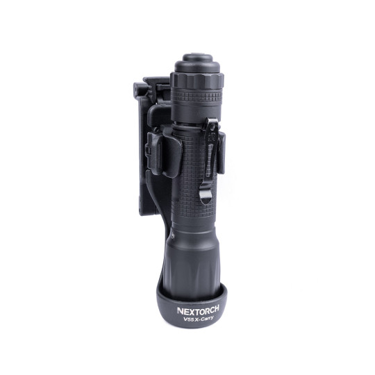Der Nextorch V55 ist ein drehbarer Lampenhalter für den professionellen Einsatz durch Militär, Polizei, Behörden und Sicherheitsdienste. Er dient zur sicheren Aufnahme von Taschenlampen mit einem Gehäusedurchmesser zwischen 1,9 und 2,3 cm und ermöglicht das Tragen an Gürtel, Koppel oder modularer Ausrüstung.