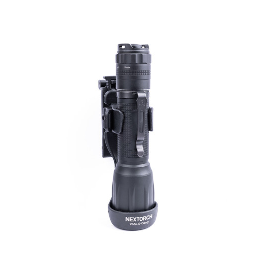 Der Nextorch V55L ist ein drehbarer Lampenhalter für den professionellen Einsatz durch Militär, Polizei, Behörden und Sicherheitsdienste. Er dient zur sicheren Aufnahme von Taschenlampen mit einem Gehäusedurchmesser von 2,4 bis 2,8 cm und ist für den Einsatz an Gürtel, Koppel oder modularer Ausrüstung ausgelegt.