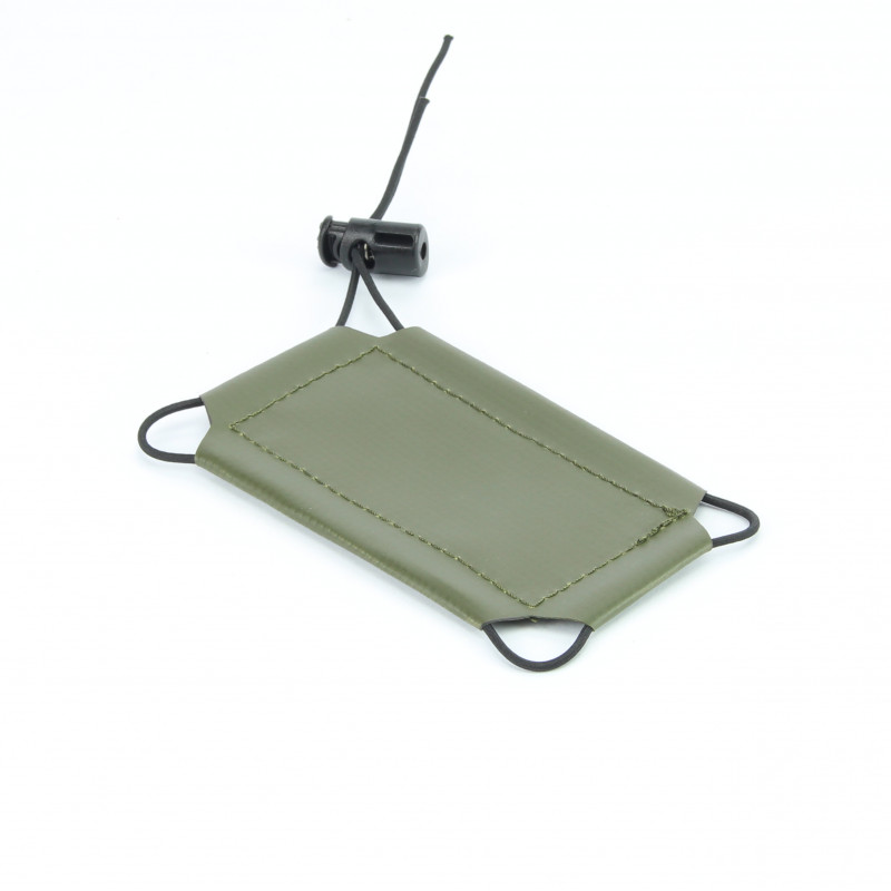Mithilfe des Gummibandes und des Kordellstoppers lässt sich diese Halterung an verschiedene Geräteabmessungen anpassen.