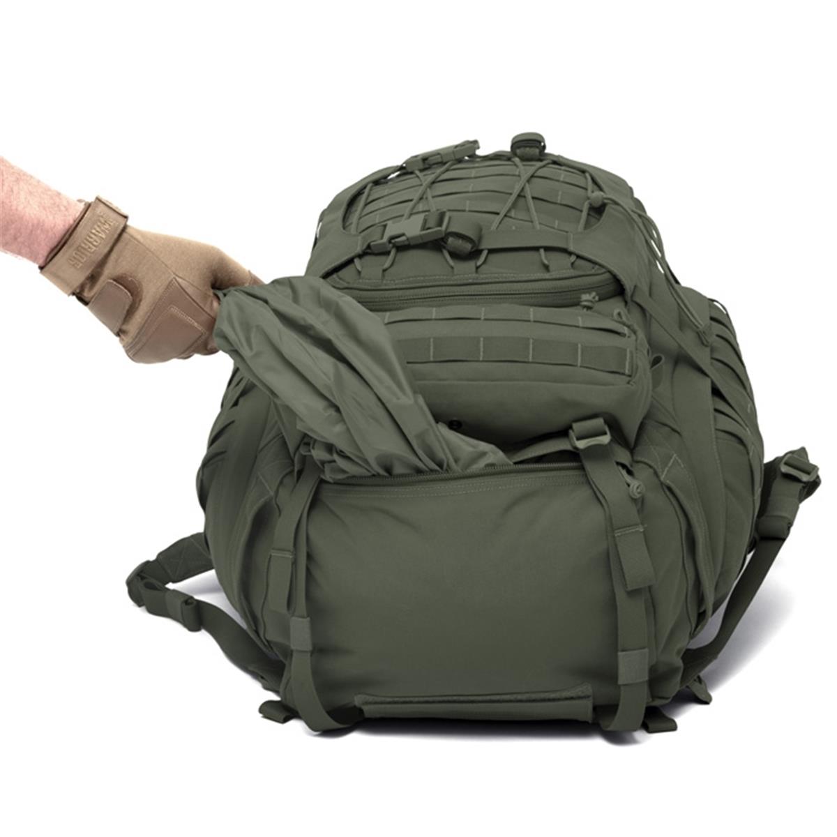 - Deckel mit innenliegendem RV-Fach und MOLLE-Bändern