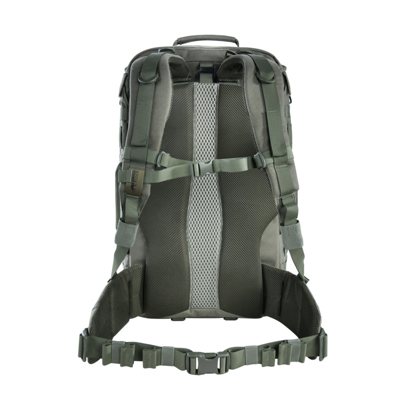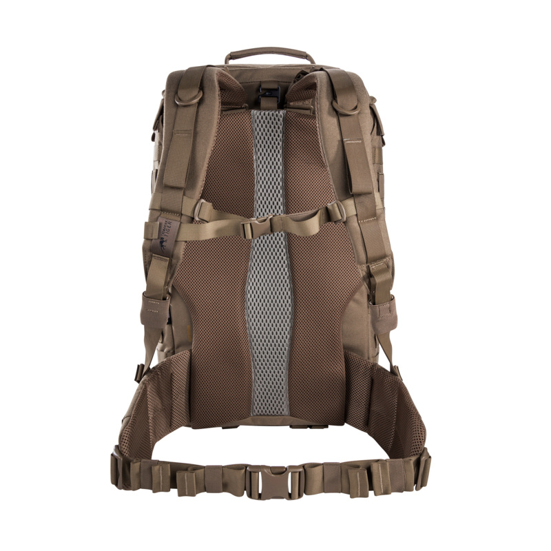 Der Rucksack verfügt über ein gepolstertes Padded Back-Tragesystem, längenverstellbare Schulterriemen (auch für das Tragen über Schutzwesten geeignet) sowie seitliche Handgriffe. Der stabile Nr.10-Reißverschluss sorgt für langlebige Funktionalität. Die Imprägnierung ist PFC/PFAS-frei.