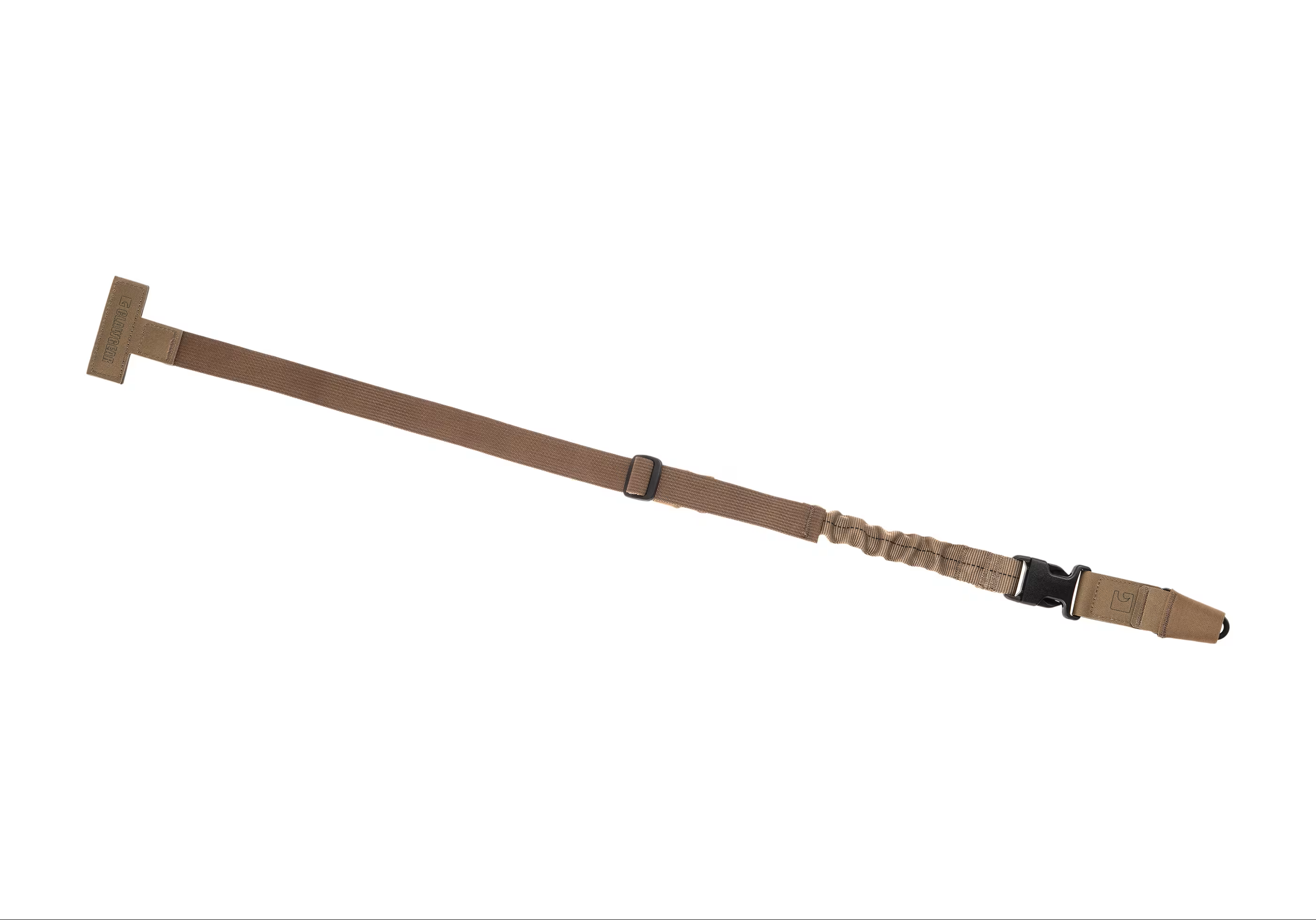 Der Clawgear One Point T-End Sling Snap Hook wurde als minimaler PALS-montierbarer Trageriemen entwickelt (vorzugsweise an einer taktischen Weste). Dank des Designs bietet der vordere Teil Elastizität, die mehr Bewegungsfreiheit ermöglicht. Der Riemen hat eine allgemeine Größenregulierung mit abnehmbarem vorderen Anschluss. Der Stahl-Snap Hook ist mit einer elastischen Hülle bedeckt, um Geräusche zu minimieren.