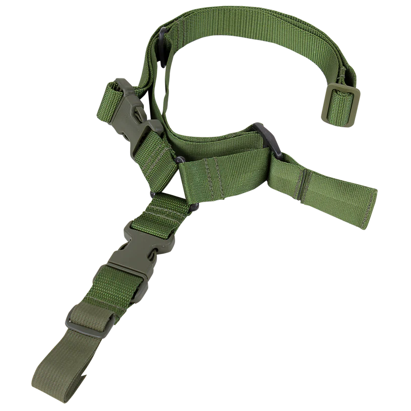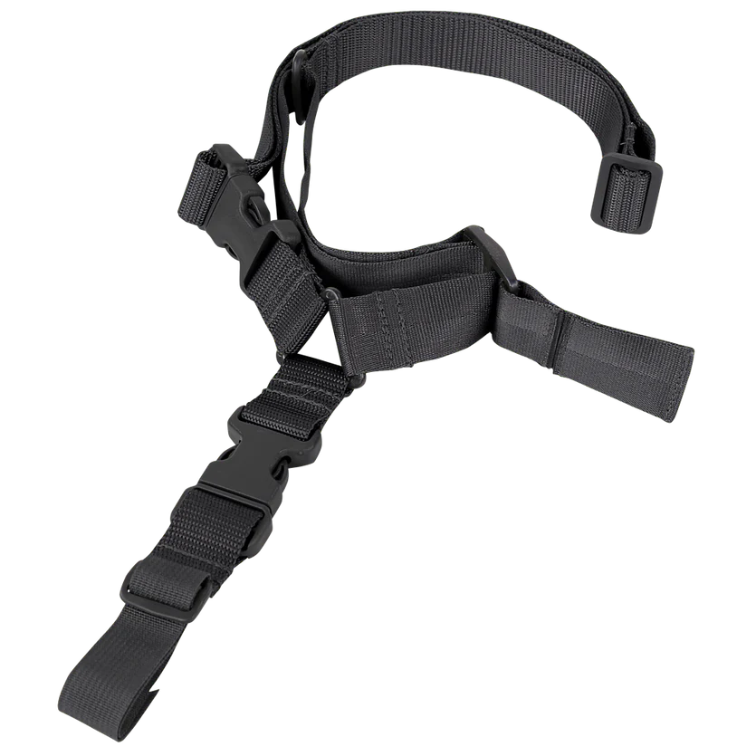 Das Besondere an diesem Tactical Sling ist die Transition-Loc-Kunststoffschnalle mit Zuglasche, die eine sekundenschnelle Verlängerung des Slings ermöglicht, um mit der Waffe in Anschlag gehen zu können.