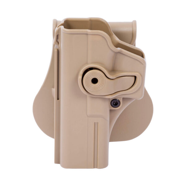 Der Tragewinkel (Cant) ist individuell einstellbar, das Holster ist 360° drehbar und verfügt zusätzlich über eine Spannschraube zur Feinjustierung des Sitzes. Es eignet sich für verschiedene Tragearten wie Strong Side, Cross Draw oder Small of Back.