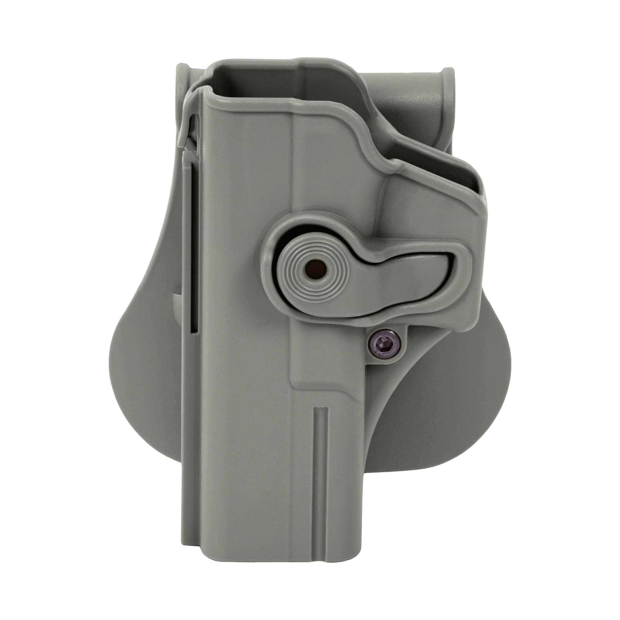 Das IMI Defense Retention Gun Holster ist ein Polymer-Paddle-Holster für Linkshänder, passend für Glock 17, 22, 28, 31 und 34. Es bietet eine sichere Arretierung mit schneller, intuitiver Freigabe über einen ergonomisch positionierten Entriegelungshebel.