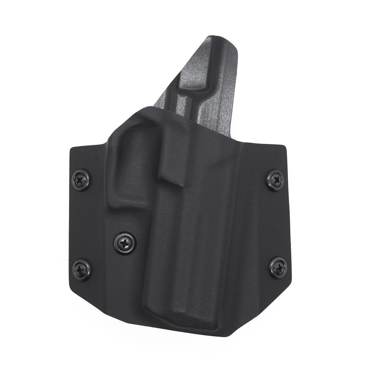 Das Holster von Holsterwerk zeichnet sich durch hohe Stabilität und geringes Gewicht aus. Der Klassiker eignet sich, dank der enganliegenden und schmalen Form, perfekt für das verdeckte Tragen. Ein sicheres Führen der Waffe im Holster ist durch die passgenaue Pressung garantiert. Eine sich am Holster angebrachte Justierschraube ist zum Einstellen des Ziehwiederstandes.