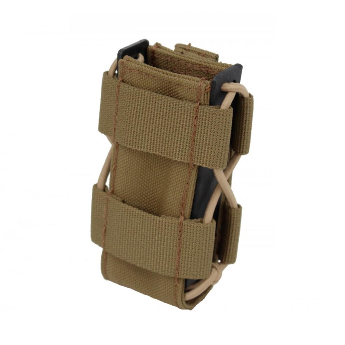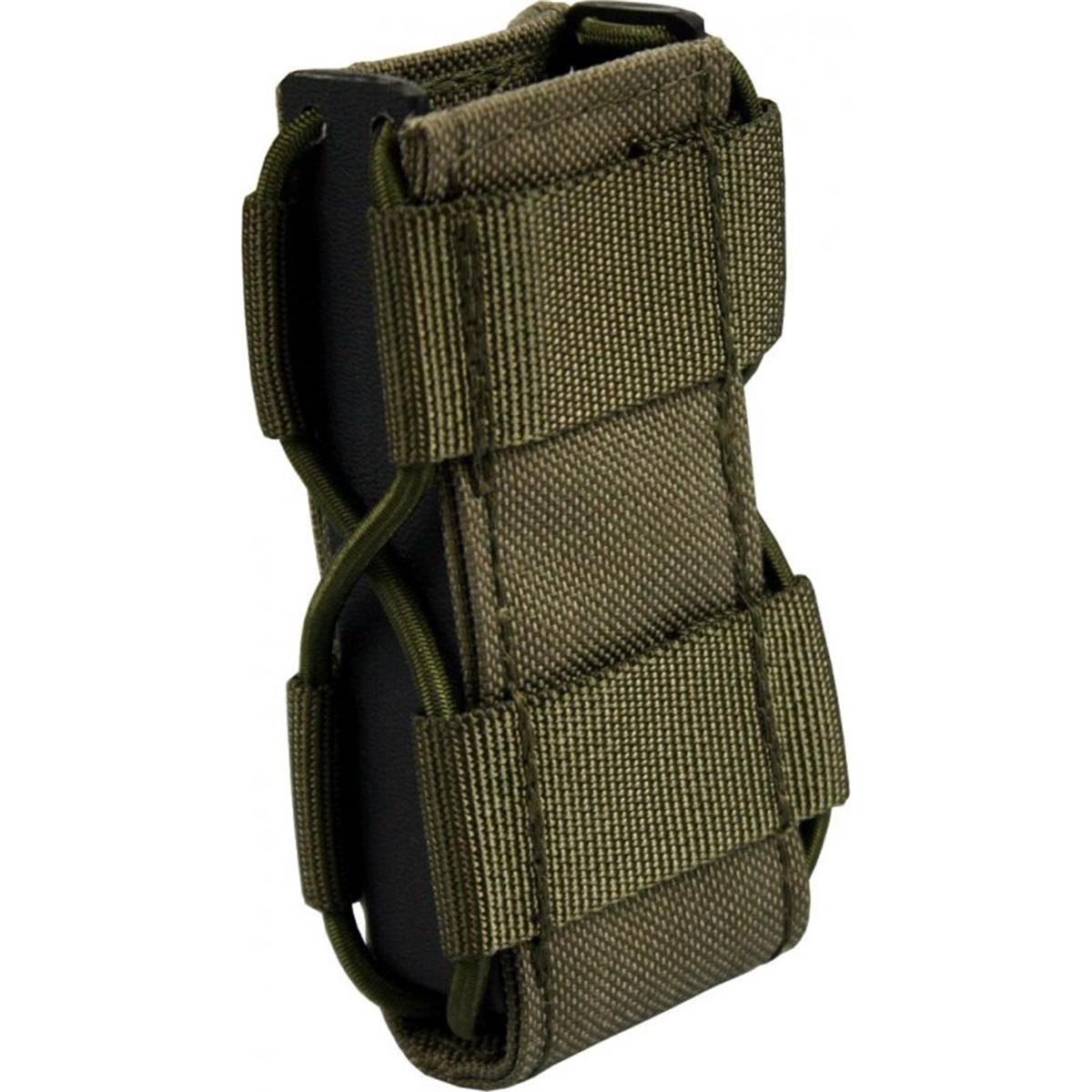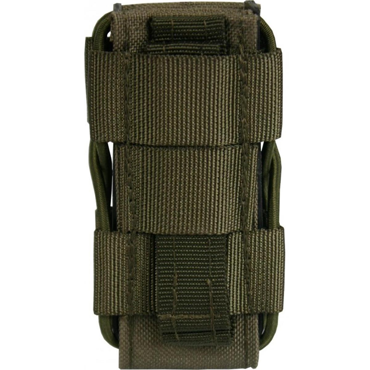 Die Hybridlösung für alle gängigen doppelreihigen Pistolenmagazine, sowie P8. Ein sicherer Halt des Magazins, sowie die schnelle Zieh- und Rückführungsgeschwindigkeit, werden durch ein mit Gummischnüren zusammengedrücktes Kydex® Profil erreicht. Dadurch wird dieses Produkt einzigartig auf dem deutschen Markt. Eine mit PAL´s besetzte Cordura® Front ermöglicht das Anbringen modularer Taschen. Dieses Multitalent ist daher die beste Allroundlösung für ihre Ausrüstung.