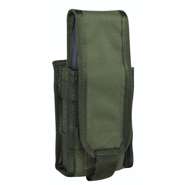 - an jeder Seite der Tasche befinden sich zusätzlich zwei Gummizüge, dadurch ist die Magazintasche komprimierbar, so dass auch bei geöffneter Tasche im Einsatz das Magazin nicht herausfallen kann