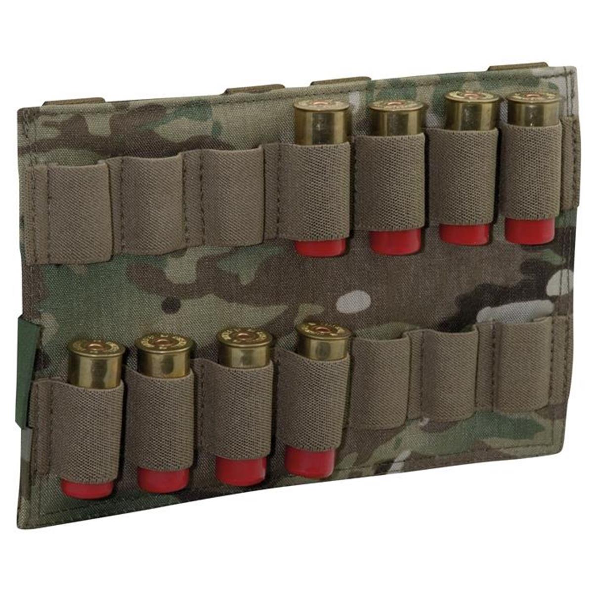 Das W.A.S. Modularpanel ist geeignet zur Aufnahme von 14 Schrotpatronen. Es lässt sich mittels MOLLE-Schlaufen auf die Front eines Plattenträgers anbringen. Wahlweise kann das Panel auch an einer Triple Mag Pouch angebracht werden.