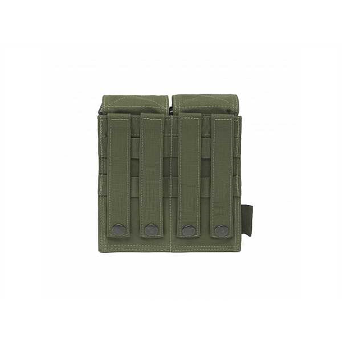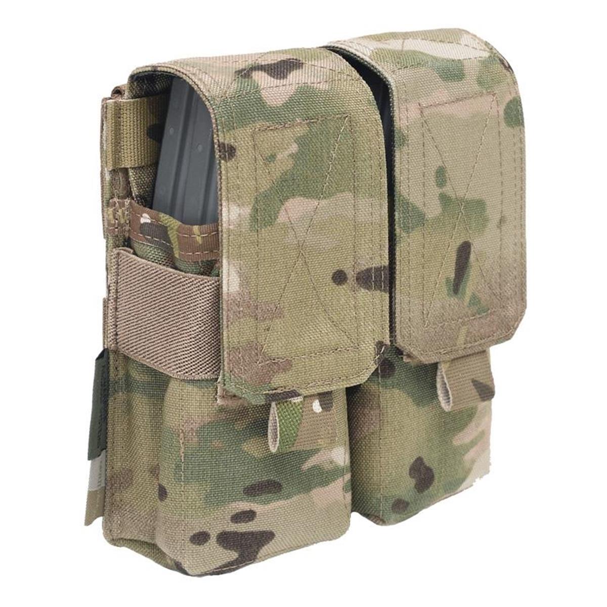 Die Warrior Assault Systems Double M4 5.56mm Mag Pouch kann 4 Magazine folgender Typen aufnehmen: M4, AR15, SA80, P Mags, H&K 416, Diemaco, Sig 516 (nicht für G36). Die Magazinabdeckung kann zum schnelleren Magazinwechsel auf die Rückseite der Tasche geklettet werden, während ein Gummiband, sowie das innenliegende Kunststoffmaterial die Magazine weiterhin in Position halten. Mittels MOLLE-Schlaufen kann die Magazintasche flexibel an der Ausrüstung befestigt werden. Hergestellt aus wasserabweisendem, infrarot absorbierendem 1000DEN Cordura werden die Militärspezifikationen erfüllt.