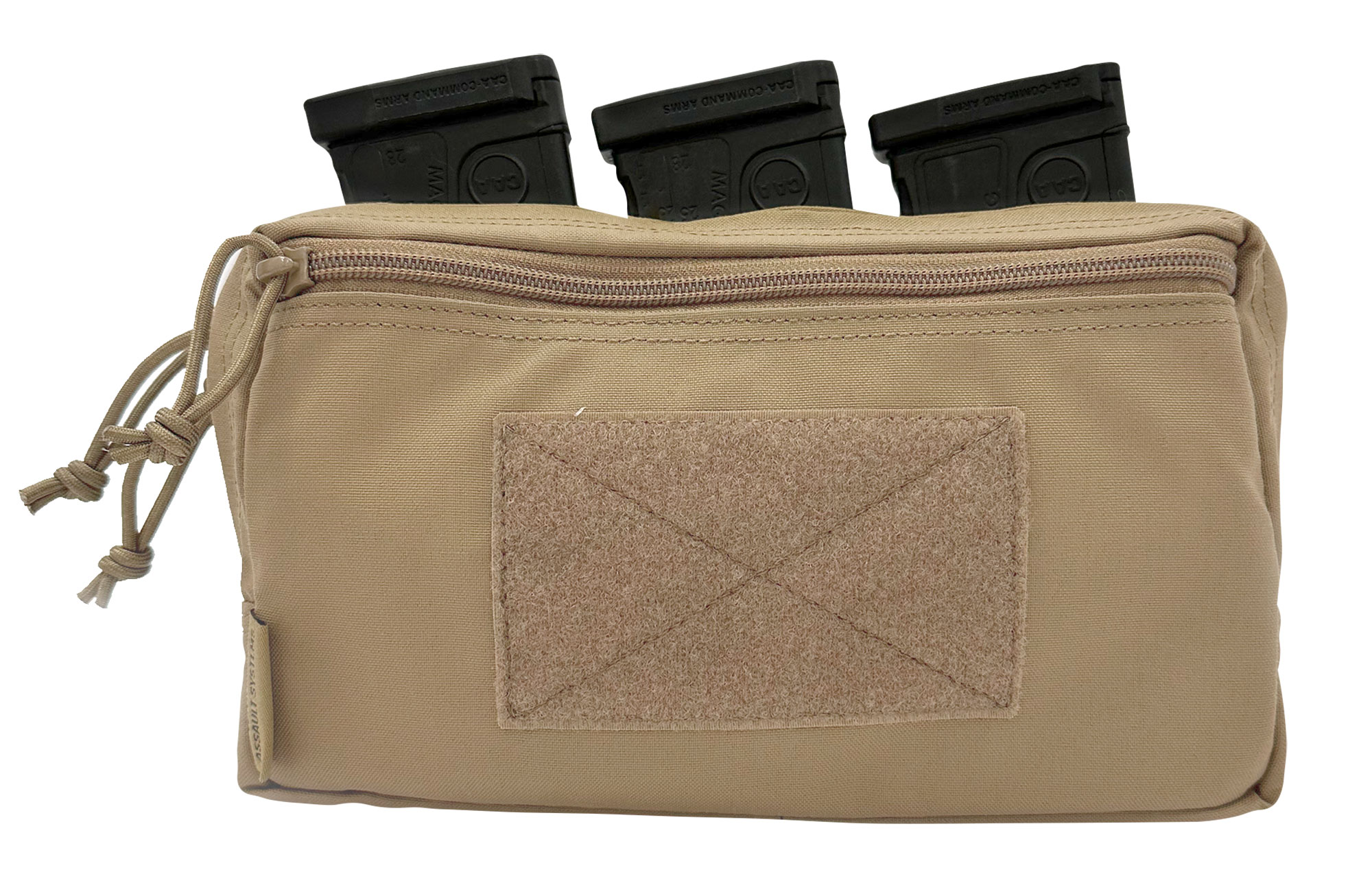 Der hintere Teil bietet Platz für 3 x 5,56 mm oder 3 x 7,62 mm x 39 mm AK-Magazine in Warriors sicheren thermoplastischen Einsätzen für schnellen Zugriff. Auf der Vorderseite befindet sich eine große Tasche mit 2 Reißverschlüssen für die Aufbewahrung für allgemeine Zwecke und eine große Auswahl an missionsspezifischer Ausrüstung, einschließlich Medi-Kit, Navigationshilfen, Handschuhen, Multitools, Admin und Karten.