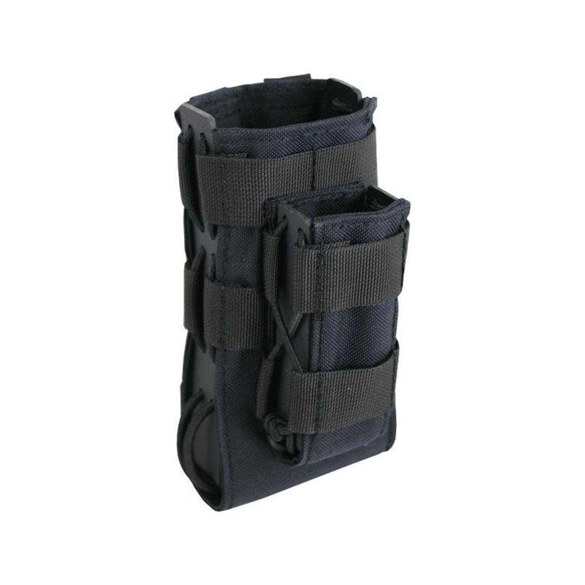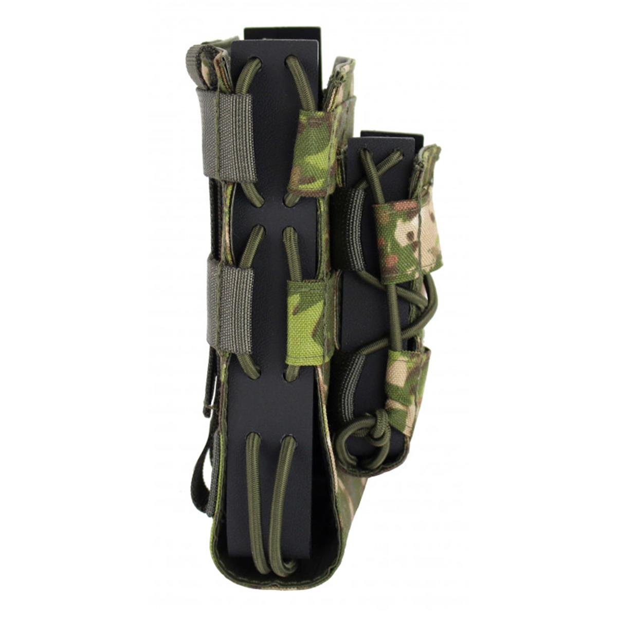 Die Duo Magazintasche ist eine Ergänzung innerhalb der Artemis Serie. Sie gibt dem Anwender die Möglichkeit, gleichzeitig ein Lang- und ein Kurzwaffenmagazin für an der Ausrüstung anzubringen. Wie bei den einzelnen Schnellziehtaschen verfügen beide über einen Kydex Profil, dass eine hohe Formstabilität und Ziehgeschwindigkeit ermöglicht. Kunststoff- und textile Bauteile werden mit stabilen Gummikordeln verbunden und verhelfen den Taschen zu einer einzigartigen Flexibilität.