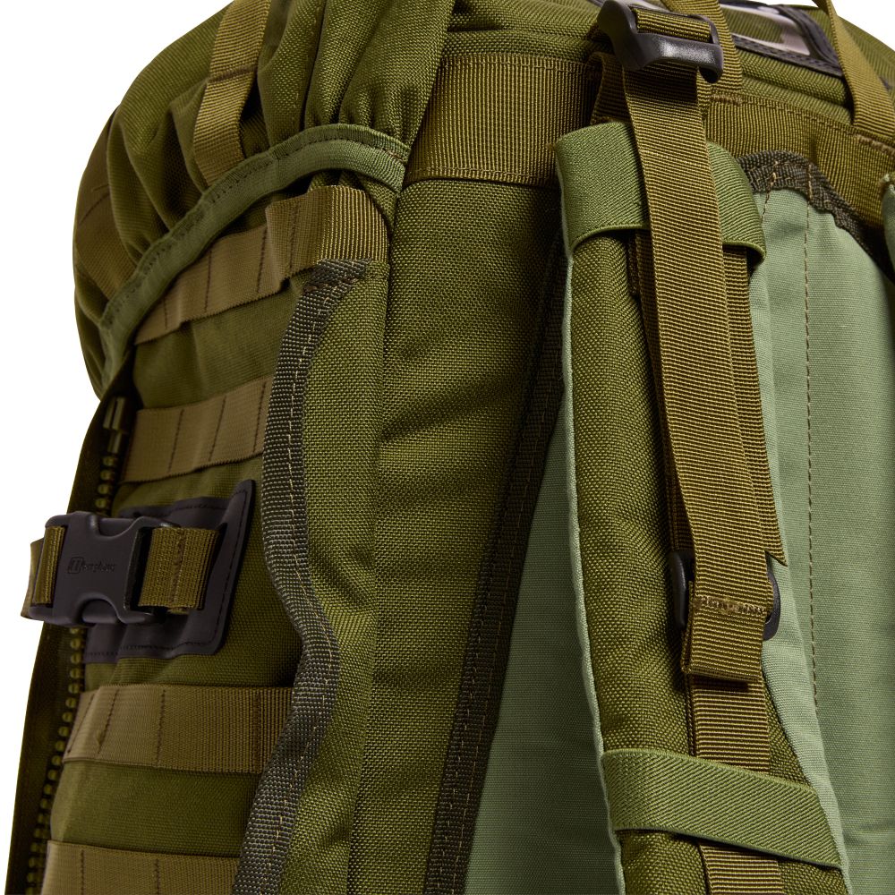 Das Pack kann eigenständig als Rucksack verwendet werden und ist mit dem Cyclops II Tragesystem ausgestattet. Ein interner, herausnehmbarer Aluminiumrahmen unterstützt die Lastübertragung. Der Hüftgurt ist verstaubar und wird durch Vorwärtsziehen der Gurtbänder angezogen. Das Rückenteil verfügt über Belüftungskanäle zur Verbesserung des Tragekomforts.