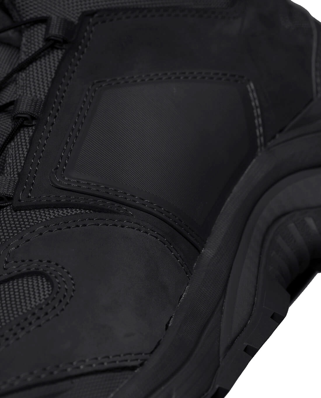 Das Obermaterial besteht aus abriebfestem Anti-Debris Mesh und nicht-reflektierenden Materialien, die auf den taktischen Einsatz ausgelegt sind. Die integrierte GORE-TEX Membran sorgt für zuverlässigen Schutz vor Nässe und unterstützt gleichzeitig eine hohe Atmungsaktivität, wodurch ein ausgeglichenes Fußklima auch bei längerer Tragedauer erhalten bleibt. Eine verstärkte Zungenkonstruktion reduziert das Eindringen von Schmutz und Partikeln.