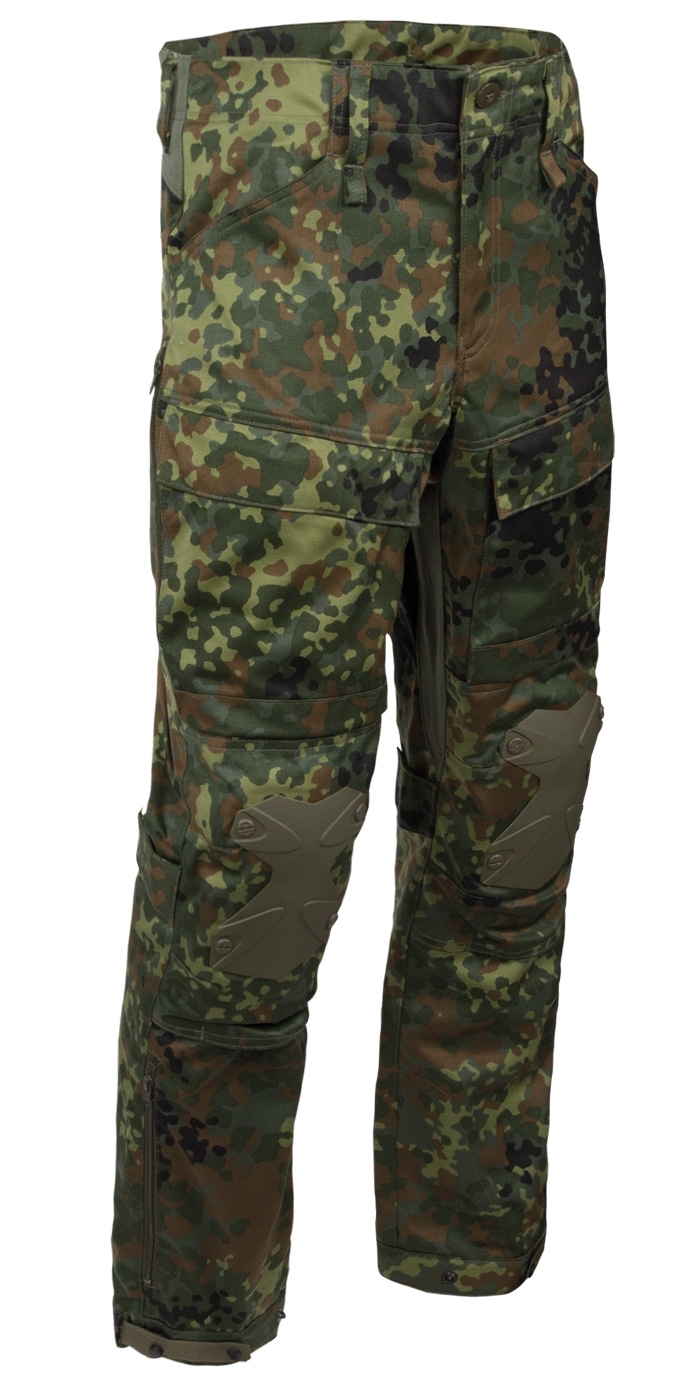 Bei der Leo Köhler Defender Einsatzhose werden Ripstop und ein dehnbares Material kombiniert. Unterschenkel-, Knie-, Oberschenkel- und Gesäßpartie besteht aus Ripstop, der Rest ist dehnbar.