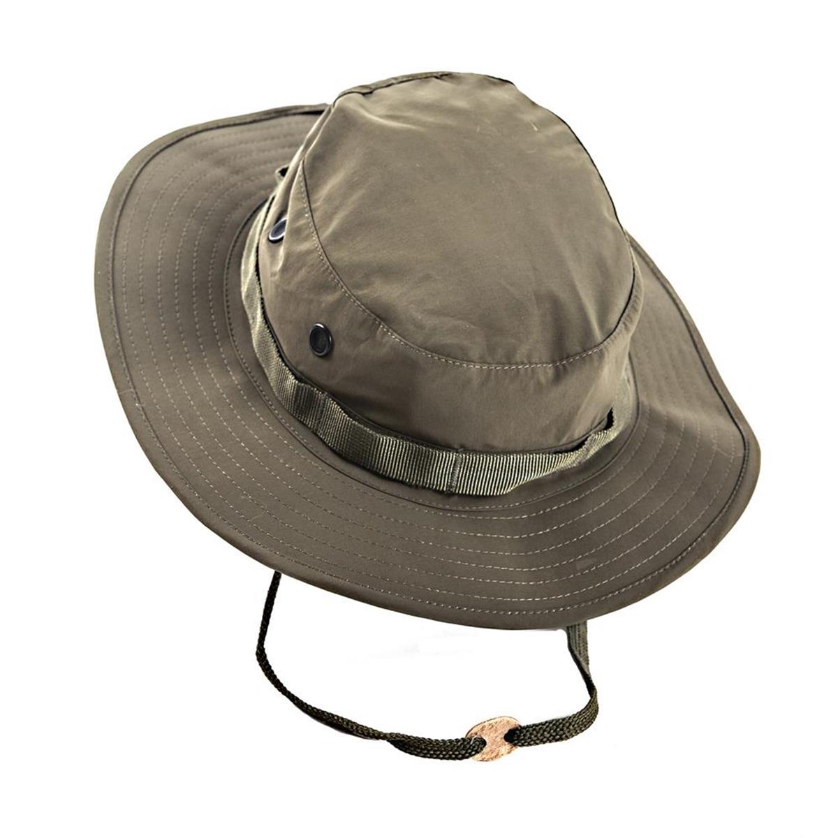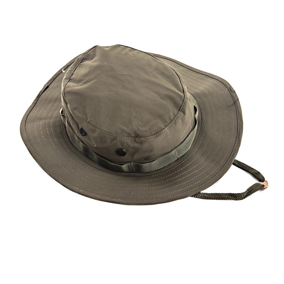 Der MIL-TEC Boonie wurde aus einem speziellen 3-Lagen-Laminat hergestellt, welches durch die Verwendung von Polyester, Nylon und einer atmungsaktiven Membran den Schutz vor Nässe sicherstellt. Atmungsaktiv und wasserabweisend kann dieser Tropenhut also witterungsunabhängig getragen werden. Die Kordelstopper ermöglichen eine Größenverstellung und die Löcher an den Seiten sorgen für Luftzirkulation. Rund um den Hut befinden sich Molle-Schlaufen.
