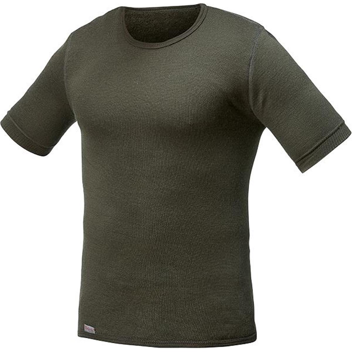 Das T-Shirt aus hochfeiner Merinowolle mit rundem Halsausschnitt ist im Rundstrickverfahren ohne längsgerichtete Nähte gefertigt und mit elastischen Ärmelbündchen ausgestattet. Das Frotteematerial verfügt über hervorragende Isolationseigenschaften und wärmt auch im feuchten Zustand sowie bei extrem kalten Temperaturen ausgezeichnet.