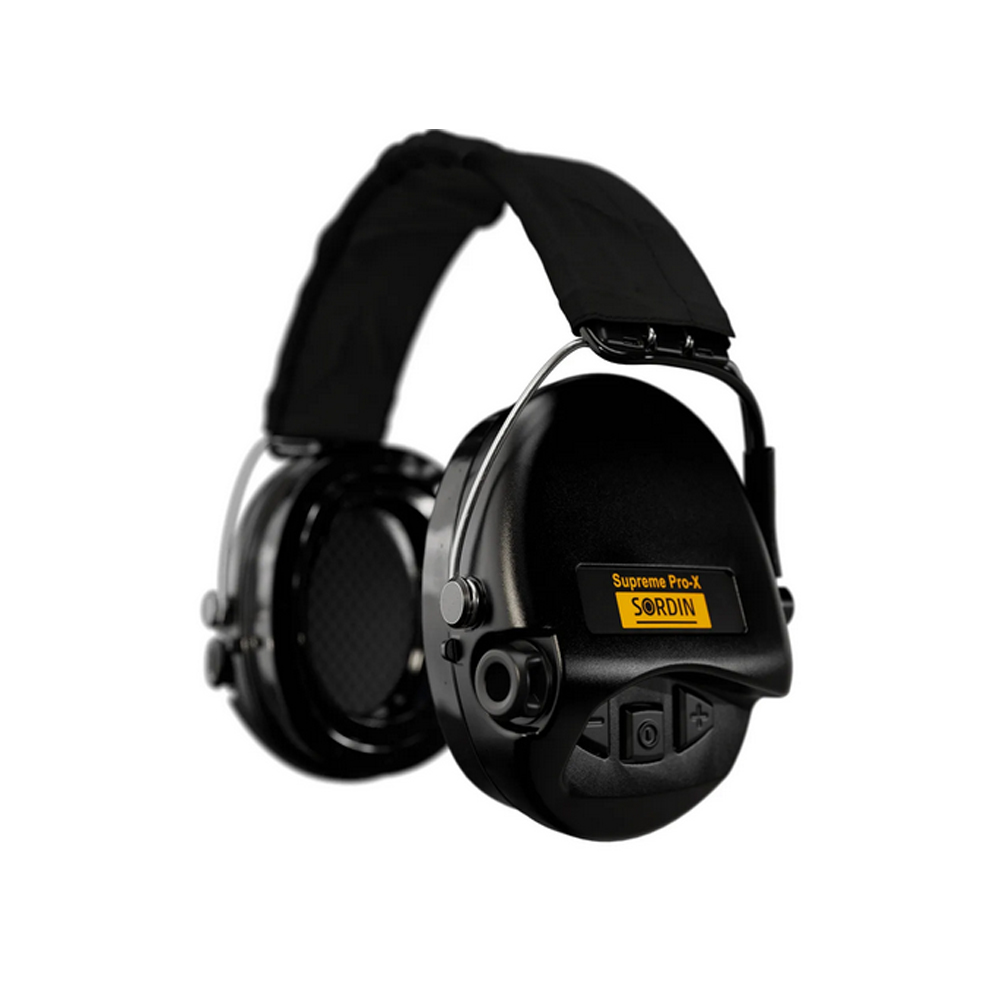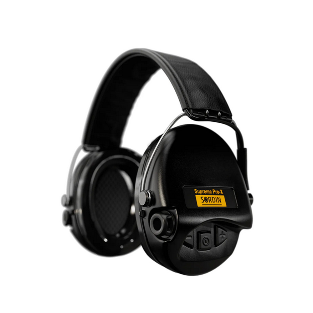 Der Supreme Pro X Aktiver Gehörschutz wurde gemäß internationaler MIL-Spezifikationen entwickelt. Diese Headsets produzieren hervorragende, realistische, digitale Klangwelten. Mit dem Sordin Supreme Pro X können Sie jetzt kommunizieren, auch wenn um Sie herum andere schießen. Die Elektronik macht es mit sehr niedrigem Stromverbrauch möglich. Laute Umgebungsgeräusche werden auf ein Level von 82 dB (A) komprimiert. Zwei separate, gut abgeschirmte Mikrofone sorgen für optimalen Stereo-Effekt und Geräuschortung. Alle beweglichen Komponente sind aus Stahl. Die Elektronik ist lackiert und daher wasserdicht. Gut angepasstes, schlankes Design mit faltbarem Stirnband. Beide Kappen sind am unteren Ende abgeschrägt, sodass der Gehörschutz sowohl für Links- als auch für Rechtshänder-Schützen passend ist. Alle elektronischen Funktionen sind in einem schlanken 3-Tasten-Pad eingebaut