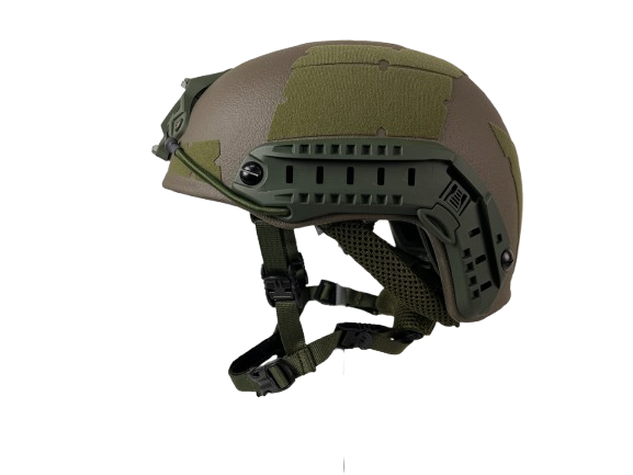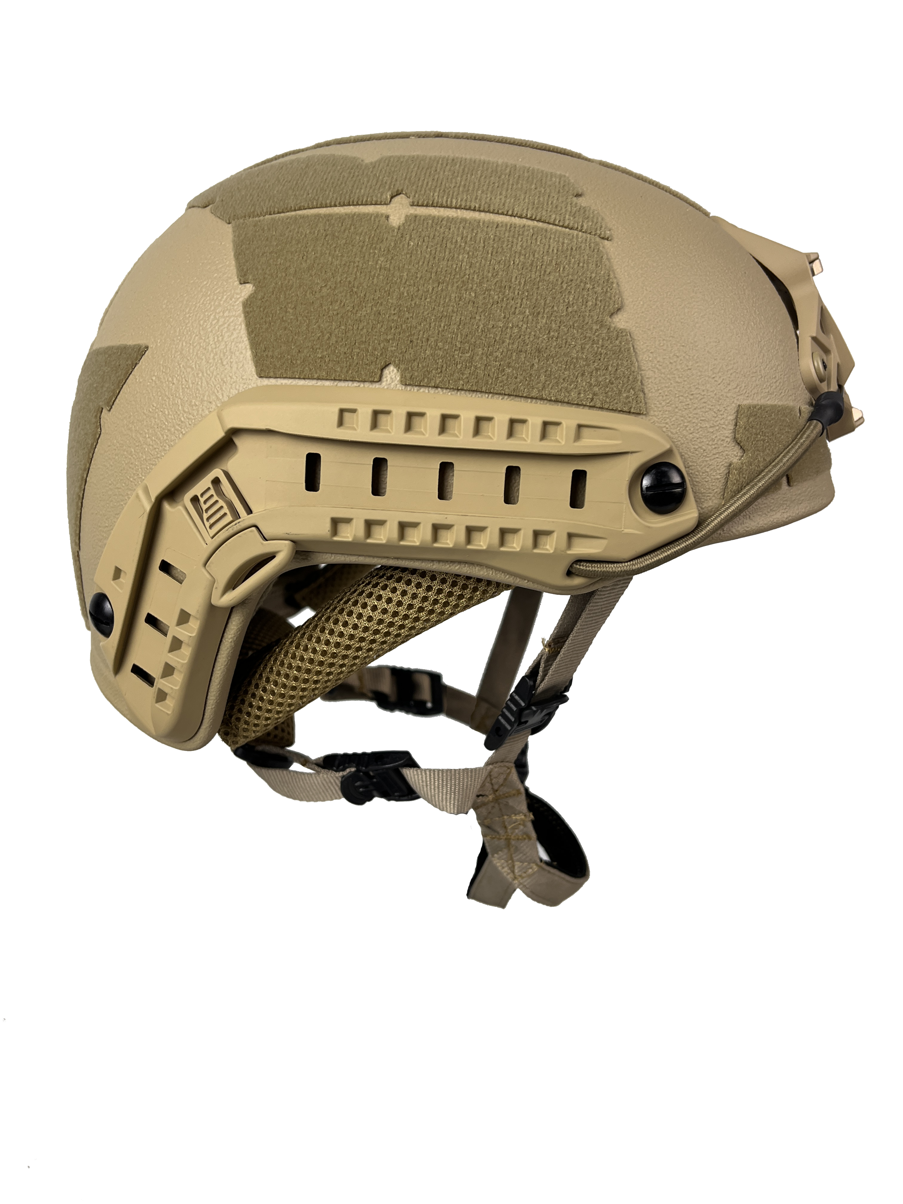 Der ballistische Schutz dieses Helmes wird durch die Verwendung von hochfestem Aramid Komposit Gewebe erreicht.