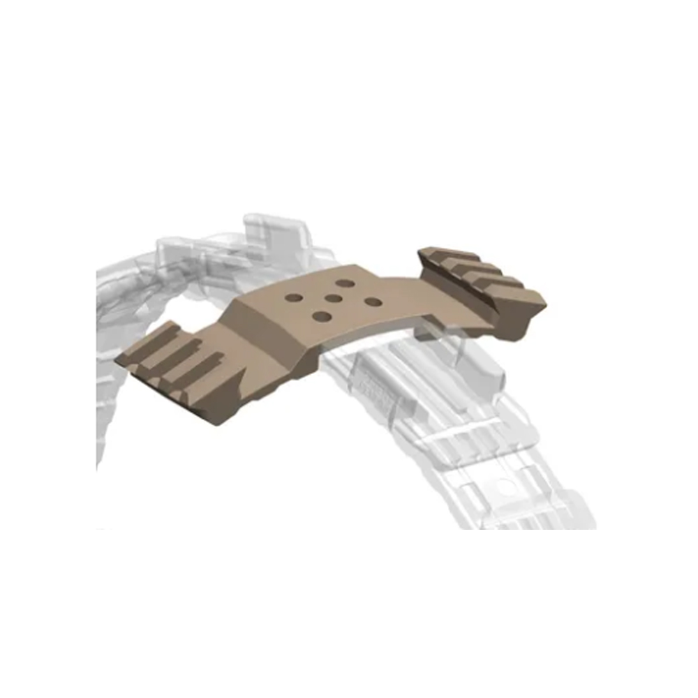 Zwei Picatinny-Schienen, die es ermöglichen zusätzliche Taschenlampen und Markierungen am Helm anzubringen. Permanente oder schnell abnehmbare Ergänzung zum HM2.