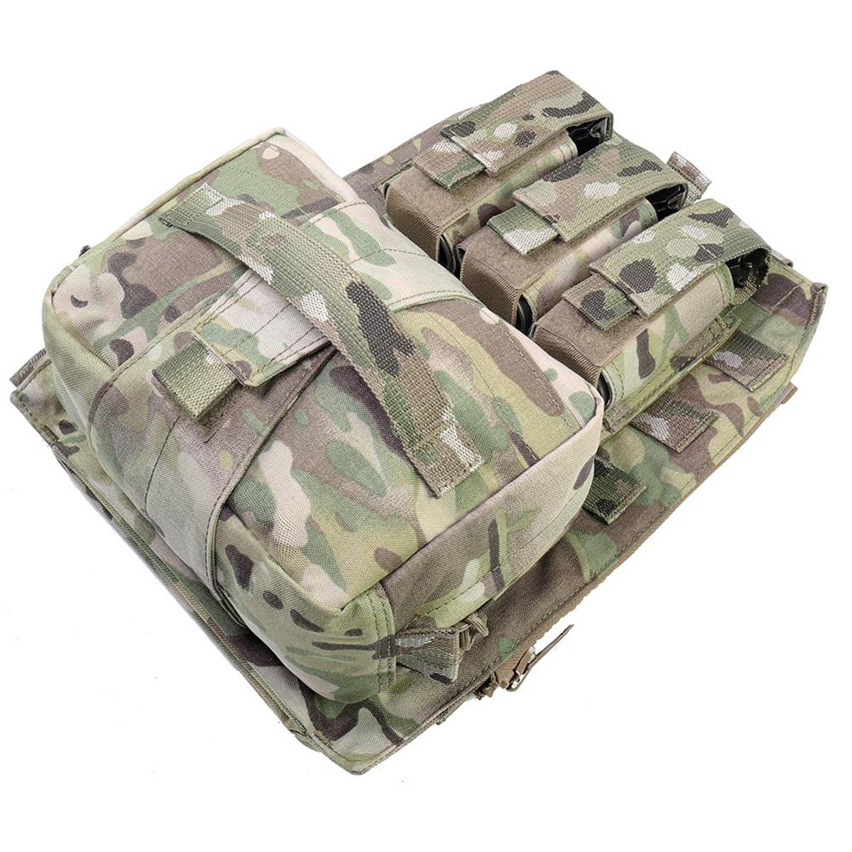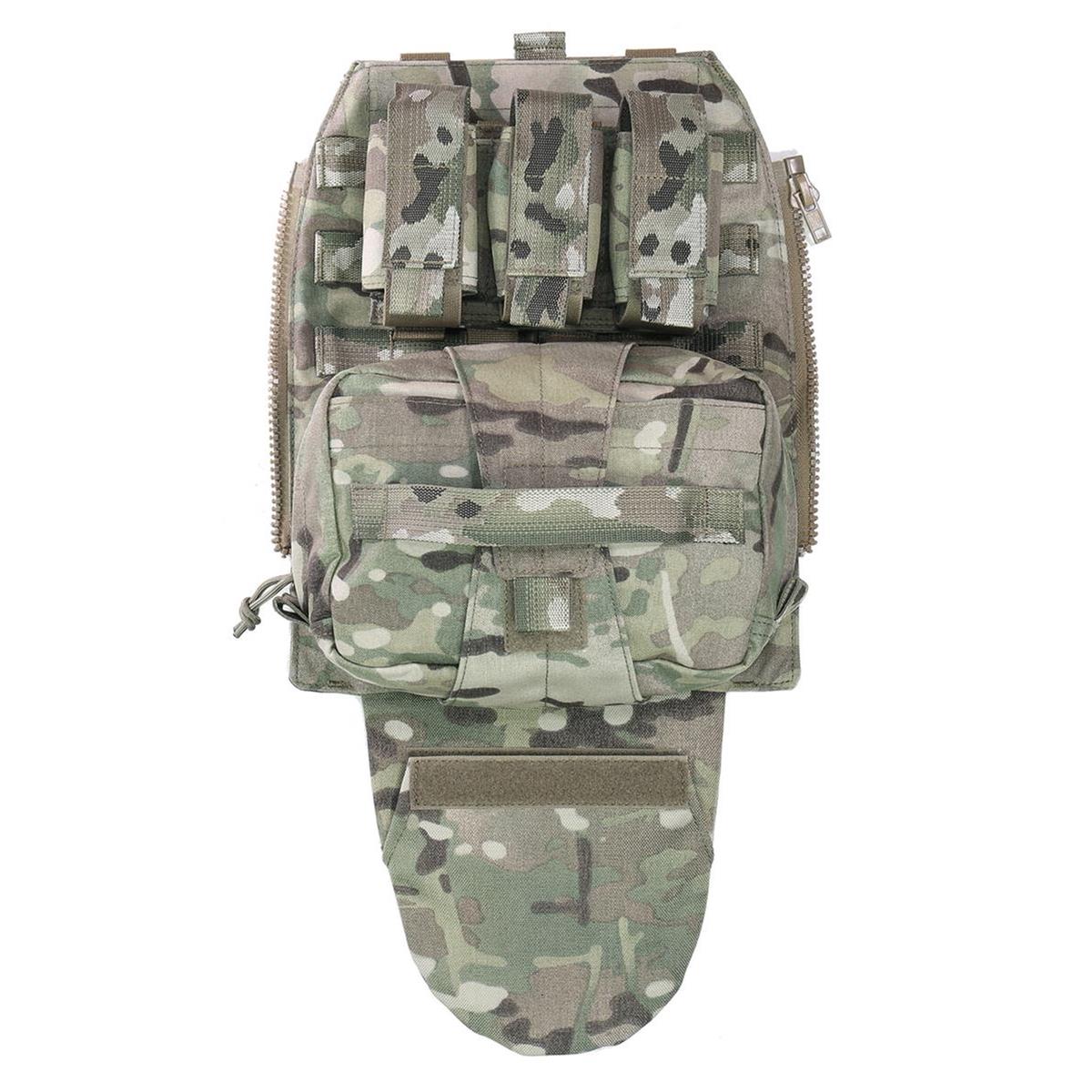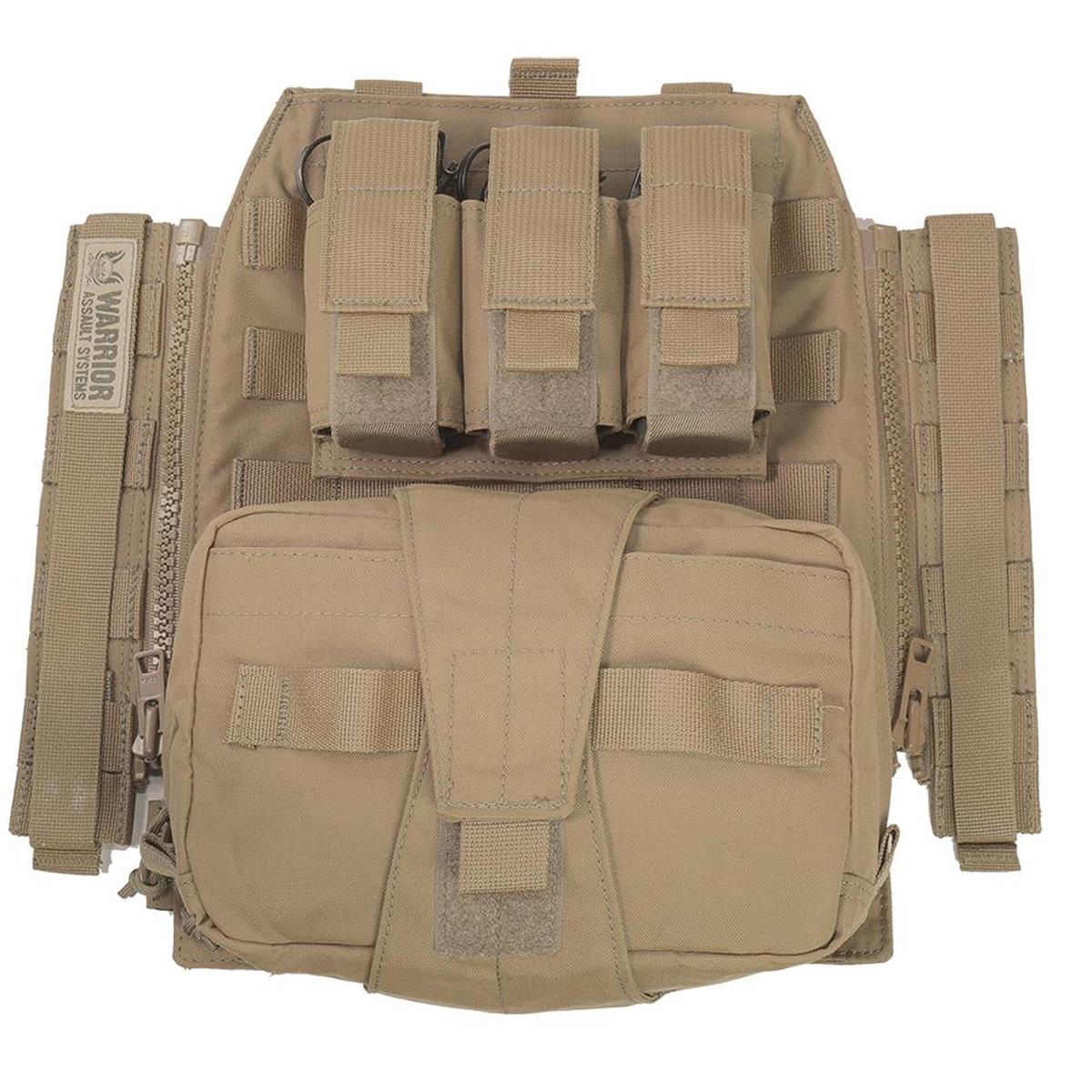 Der Assaulters Back Panel (ABP) von Warrior Assault Systems ist kompatibel mit den Warrior Plattenträgern LPC, RPC und DCS. Mit dem MOLLE-Reißverschlussadapter-Kit kann das Assaulters Back Panel schnell und einfach auf der Rückseite des Trägers befestigt werden. Das Adapter-Kit besteht aus einer linken und einer rechten vertikalen Reißverschlussblende mit MOLLE-Befestigungsschlaufen, mit welchen die Reißverschlussblenden an der Rückseite des Trägers befestigt werden. So kann das Panel bei Bedarf mit den Reißverschlüssen an- und abgezippt werden. Das Panel besitzt eine modulare 3er 40 mm Kampfmitteltasche für Blendgranaten und eine abreißbare Mehrzweck/ Medic Tasche mit Klettrücken. Das Assaulters Back Panel besitzt zudem ein Trinkblasenfach mit Klettverschluss. In dem Fach befindet sich eine nach unten herausziehbare Tasche um Aufbruchwerkzeug, wie Spreizhämmer, Halligan und Bolzenschneider zu transportieren.