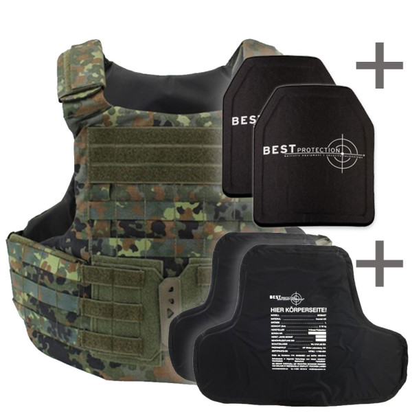 Lieferumfang: 1 x Komplettset Zentauron Schutzweste/Plattenträger MOBAST-THOR inkl. NIJ L3A Weichballistik und 2x ICW NIJ L4 Platte 30x25cm 10"x12"