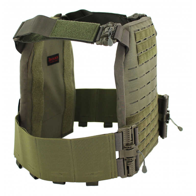 Der Plattenträger Vulcan LC (Lasercut) Rubberbund ist ein modulares Low-Profile System. Er eignet sich als Überzieh- und Unterzieh- Plattenträger. Dank der ROC-Schnallen (Rapid Opening Connector) am Kummerbund und Schulterträger lässt sich der Plattenträger schnell an- und ablegen. Die Plattentaschen nehmen ballistische Schutzeinlagen mit dem Maß 25cm x 30cm auf. Die Hartballistik und Softballistik wird via Klett im Inneren der Plattenasche fixiert. Die Innenseite sind mit Klettflächen für eine zusätzliche Polsterung besetzt.