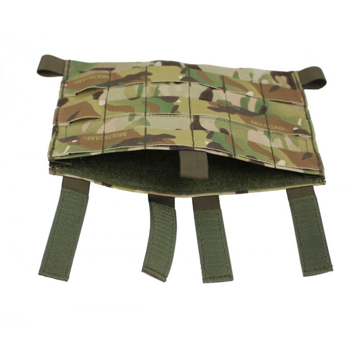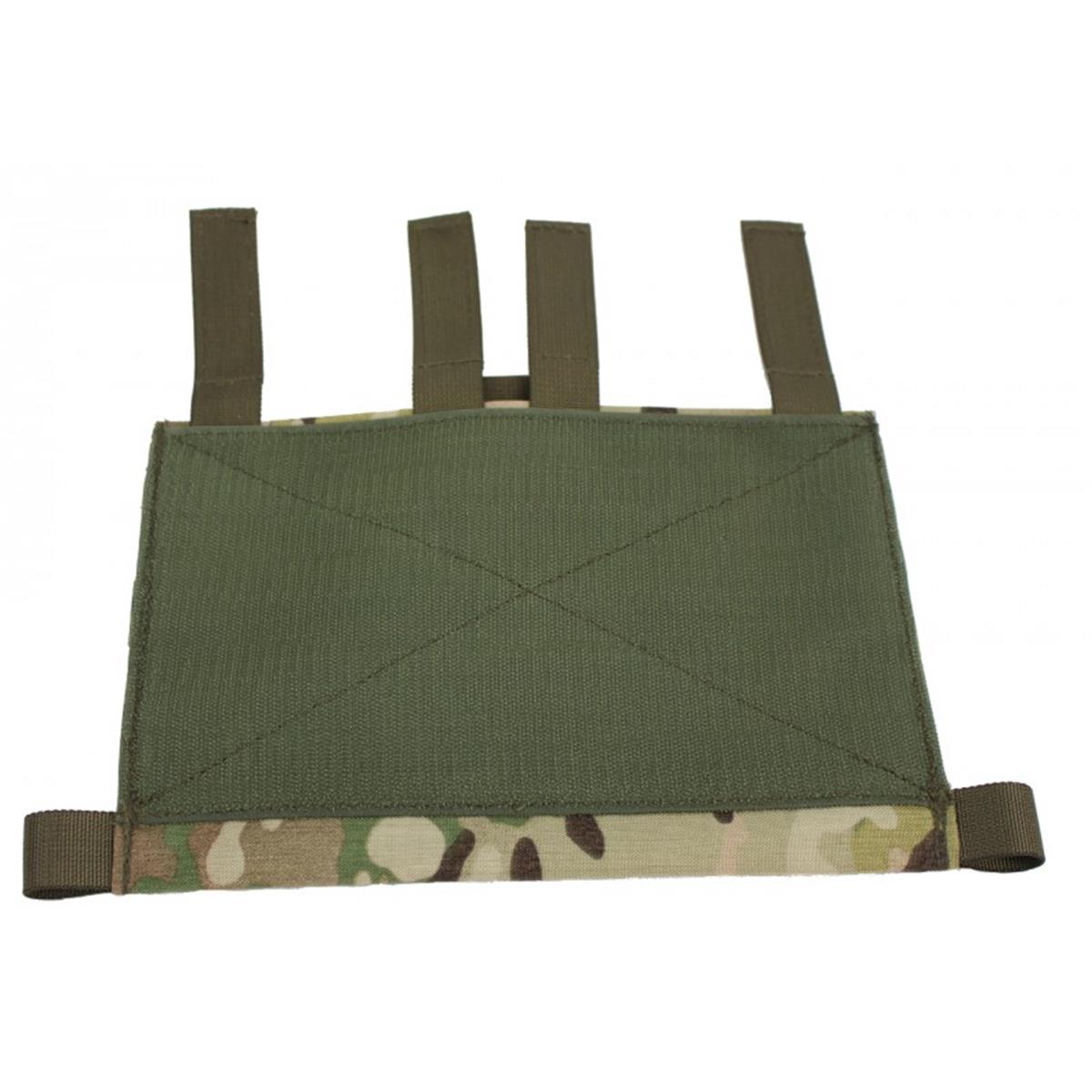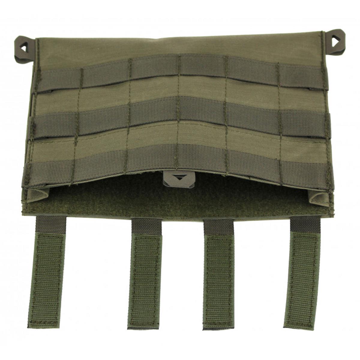 MP-und Pistolenmagazinen. Durch 4 mit Klett besetzte Gurte lässt sich die Flap sicher am Plattenträger befestigen.