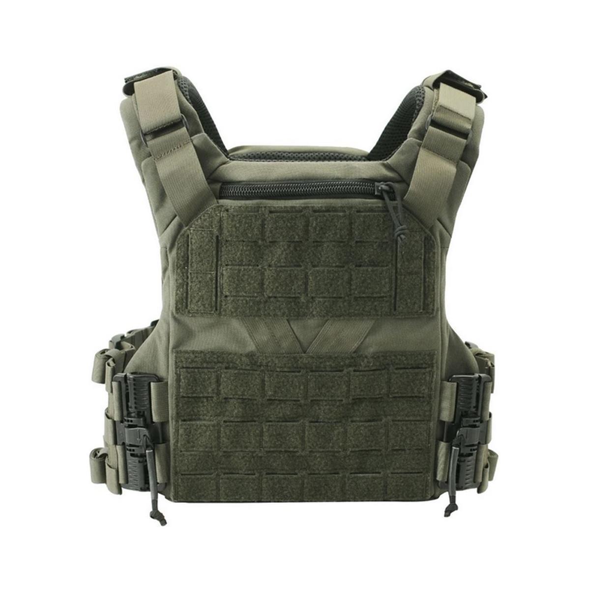 Der Plattenträger ist mit dem Egress™-Schnellverschlusssystem sowie dem firmeneigenen Fast-Adjust™-Kummerbund ausgestattet. Dieser kann vom Träger in Echtzeit feinjustiert werden, um Ermüdung und eingeschränktes Situationsbewusstsein zu vermeiden.