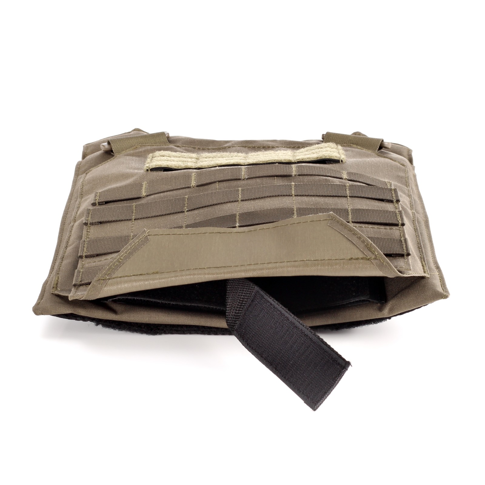 - Kummerbund stufenlos verstellbar, mit Einschubfächern für Seitenweichballistik oder flache Ausrüstung