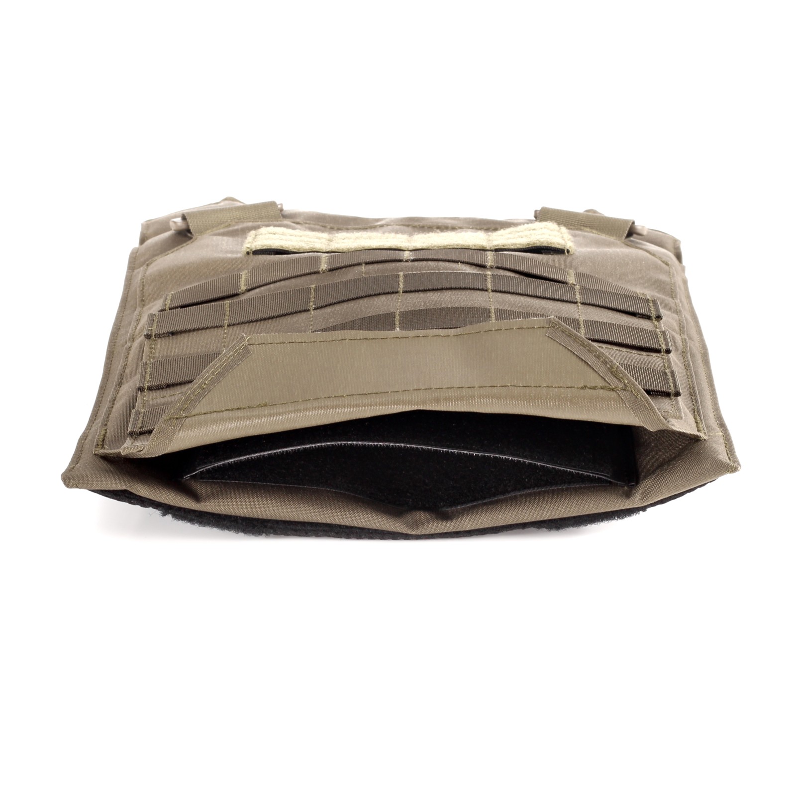 Die außenliegenden Plattentaschen sind für Hardballistik in SAPI-Größe M sowie Softballistik in den Größen M (ca. 25 × 30 cm) und L im SAPI-Format (ca. 27 × 33 cm) ausgelegt. Hard- und Softballistik werden in getrennten Einschüben sicher aufgenommen und können je nach Bedrohungslage schnell gewechselt werden. Die Innenseite der Plattentaschen ist mit 3D-Mesh ausgekleidet, um Belüftung und Tragekomfort insbesondere bei langen Tragezeiten oder Einsätzen in warmen Klimazonen zu verbessern.