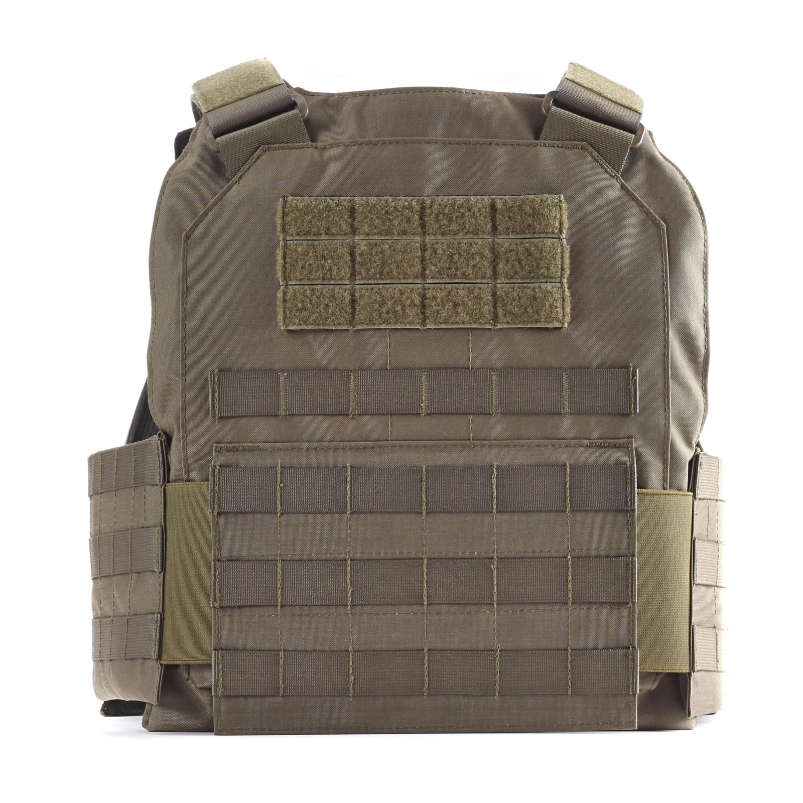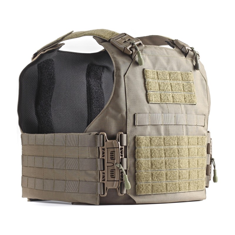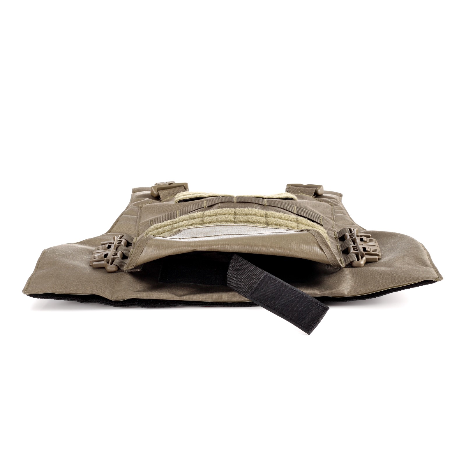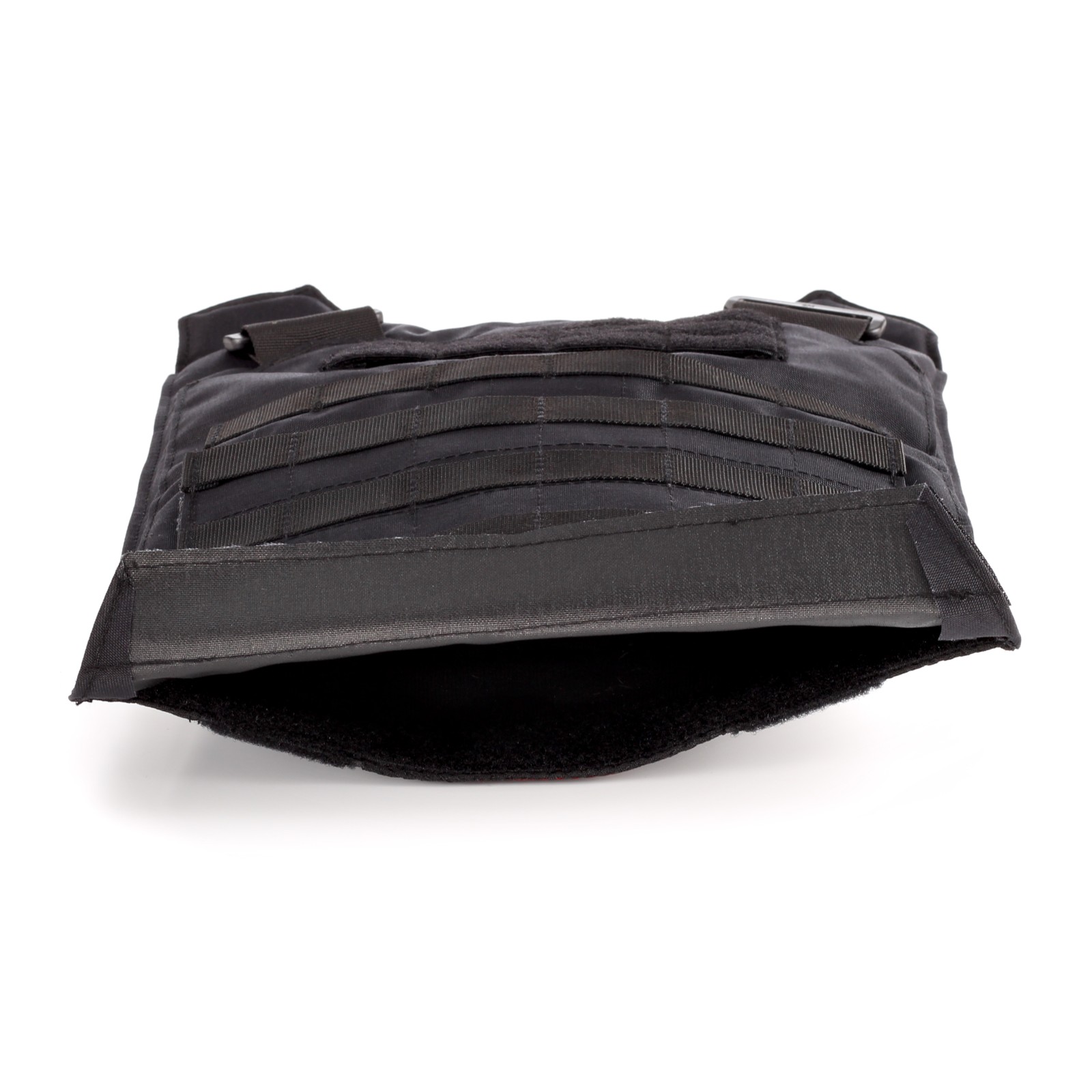 Die außenliegenden Plattentaschen bieten getrennte Einschübe für Hard- und Softballistik. Die Weste ist für Hardballistik im SAPI-Format Größe M sowie für Softballistik in den SAPI-Größen M und L ausgelegt. Zusätzlich verfügt der Kummerbund über Einschübe für Seitenweichballistik.