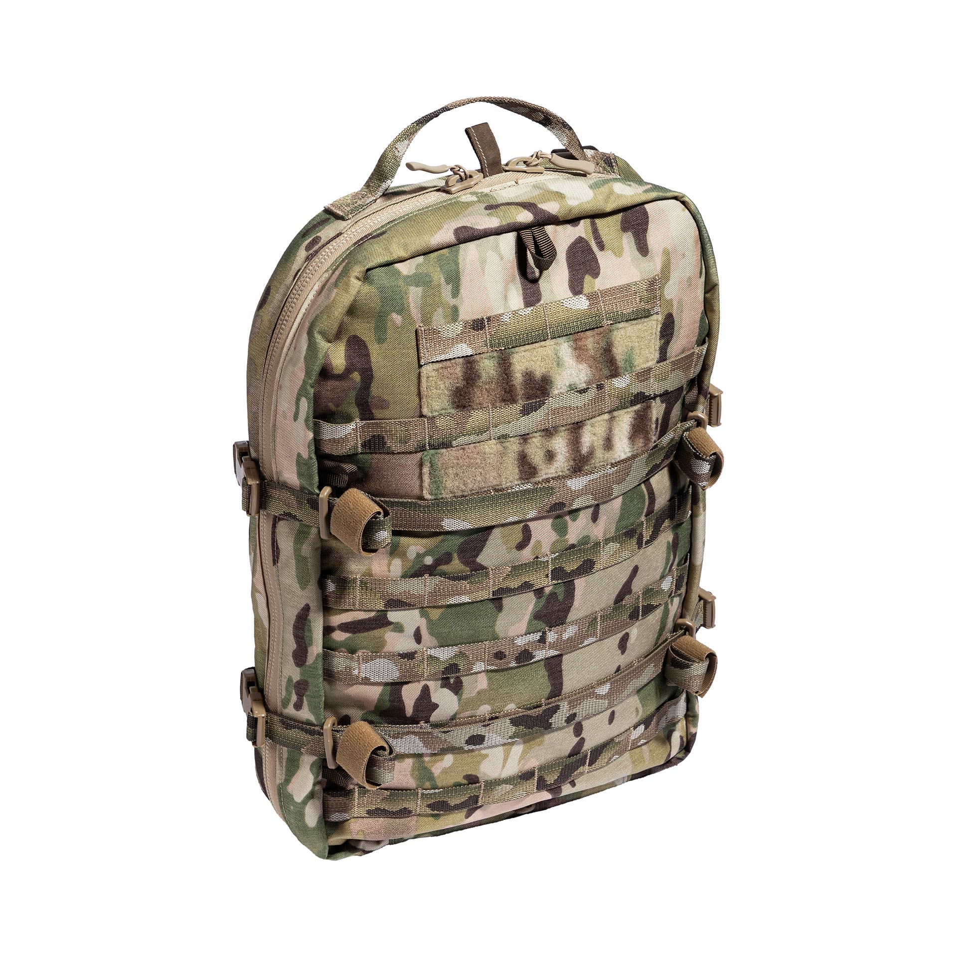 Außen sind 20mm MOLLE/PALS Reihen zur Aufnahme zusätzlicher Taschen oder Ausrüstung integriert. Im Inneren verfügt die Rückentasche teilweise über MOLLE/PALS zur gezielten Erweiterung deines Set-ups. In den Farben Multicam® und 5fb-Flecktarn ist das Gurtband auf der Außenseite im passenden Tarnmuster.