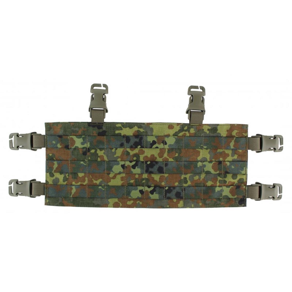 Durch die mitgelieferten QASM / Schnellmontage-Schnallen lässt sich die Flap bei einem Waffensystemwechsel und für das Aufsitzen auf Fahrzeugen in Sekunden abnehmen und auch wieder anbringen. Diese Erweiterung passt an den Plattenträger Vulcan II und an die Schutzweste MOBAST/THOR.