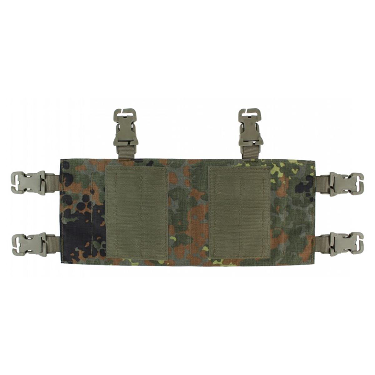 Optional erhältliche QASM / MOLLE-Adapter ermöglichen das Anbringen dieser Flap auch an verschiedenen anderen Westen.
