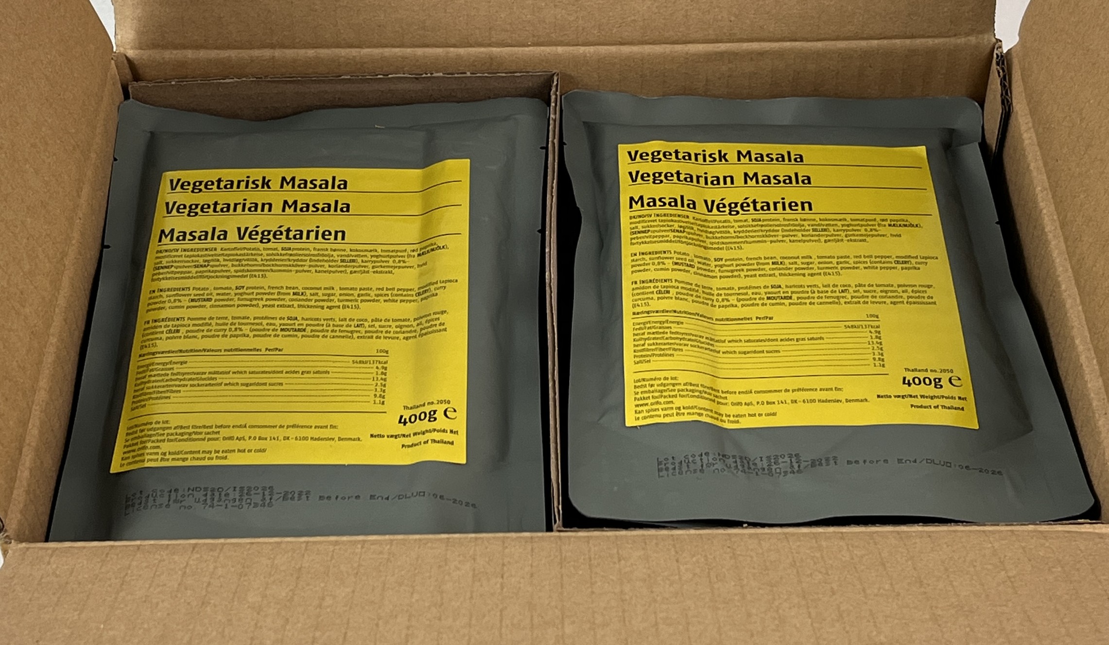 Produktinformationen "EXDK ORIFO EPA Vegetarian Masala 16 St. x 400g Box MHD 06/2026 Notfallnahrung"