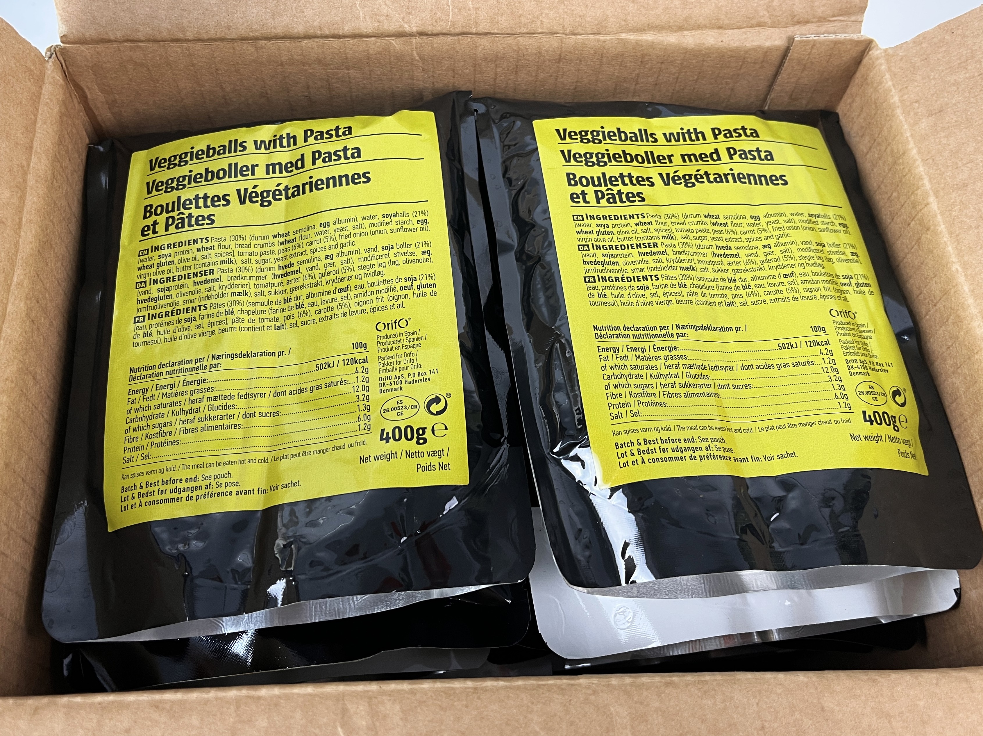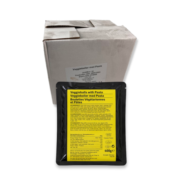 Lieferumfang: 1 x EXDK ORIFO EPA Veggieballs Pasta 22 St.x400g BOX Notfallnahrung MHD 07/2026