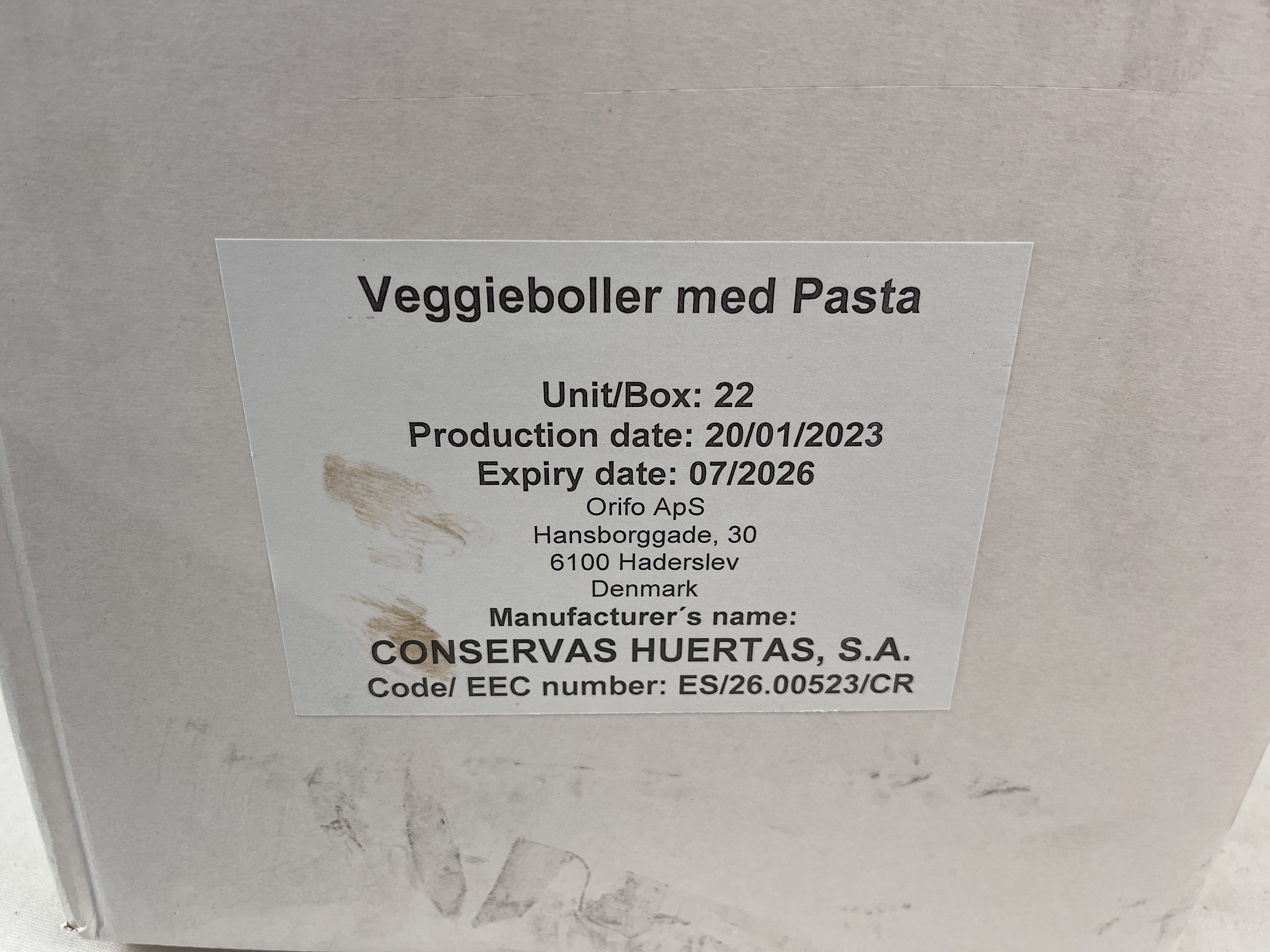 Produktinformationen "EXDK ORIFO EPA Veggieballs Pasta 22 St.x400g BOX Notfallnahrung MHD 07/2026"