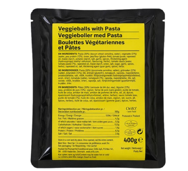 Produktinformationen "EXDK ORIFO EPA Veggieballs with Pasta 400g MHD Notfallnahrung"