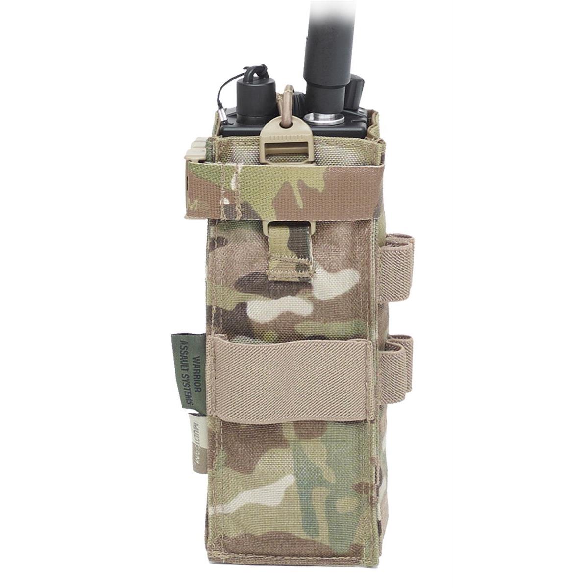Die Warrior Assault Systems Funkgerätetasche Generation 2 dient zur Aufnahme eines PRC-148 Funkgerätes oder Funkgeräten gleicher Größe. Die Tasche ist um 90 Grad abklappbar und ermöglicht somit direktes Sichtfeld auf den digitalen Bildschirm und das Bedienfeld. Ein seitliches Bedienfeldfenster vereinfacht die Handhabung. Zusätzlich ist die Tasche mit einem elastischen Gummiband für ein Tourniquet und seitlichen Gummibändern für 2 Leuchtstäbe ausgestattet. Die Tasche ist leicht gefüttert und kann mittels MOLLE-Schlaufen flexibel an der Ausrüstung befestigt werden. Hergestellt aus wasserabweisendem, infrarot absorbierendem 1000DEN Cordura werden die Militärspezifikationen erfüllt.