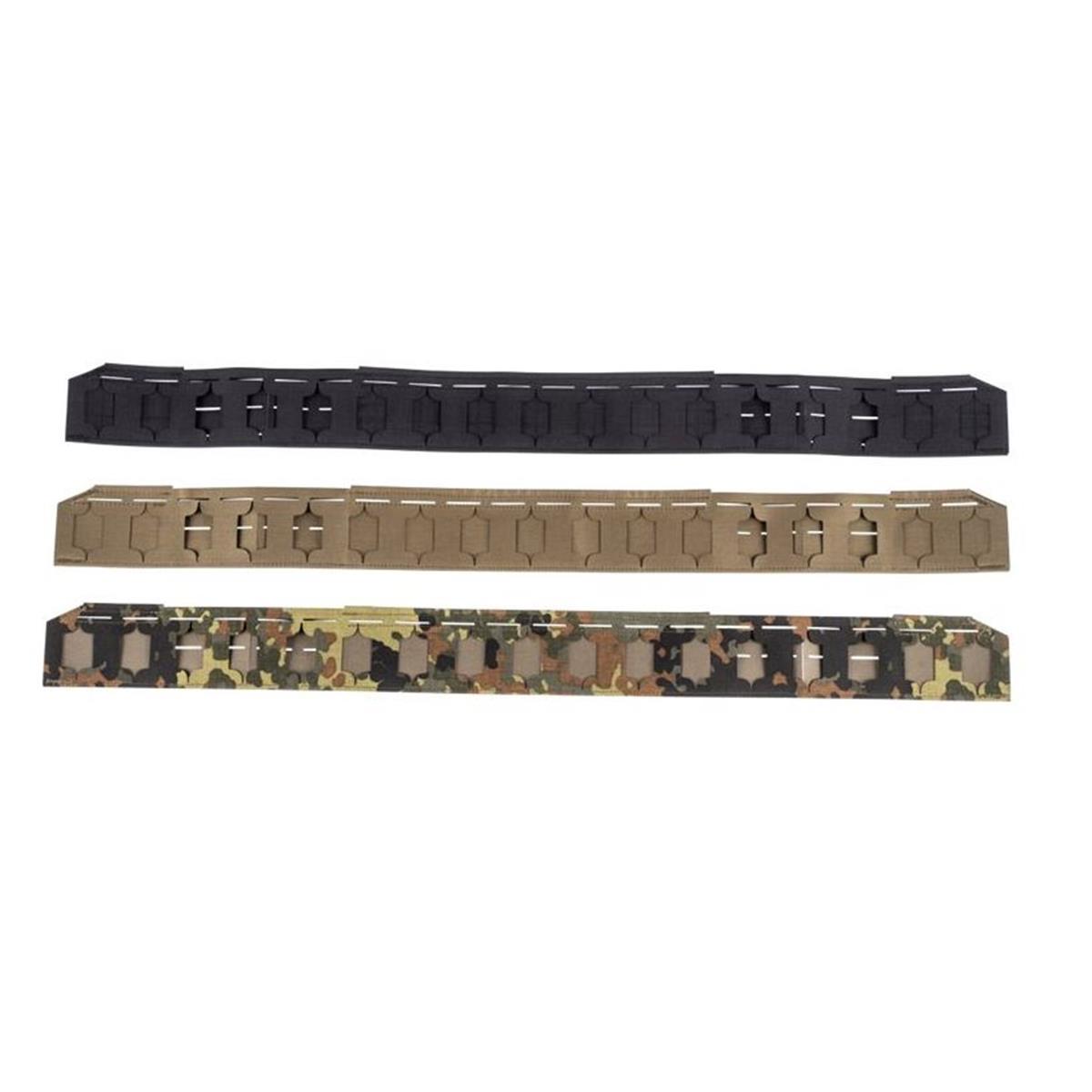 In die Oberfläche wurden mit Lasertechnik PALS+ Schlitze eingeschnitten, bei einer Bauhöhe von nur 72mm ist es uns gelungen 2.5 nutzbare Reihen zu erzeugen. So können auch Pistolenmagazintaschen mit nur eine Mollereihe auf der Rückseite sicher befestigt werden.