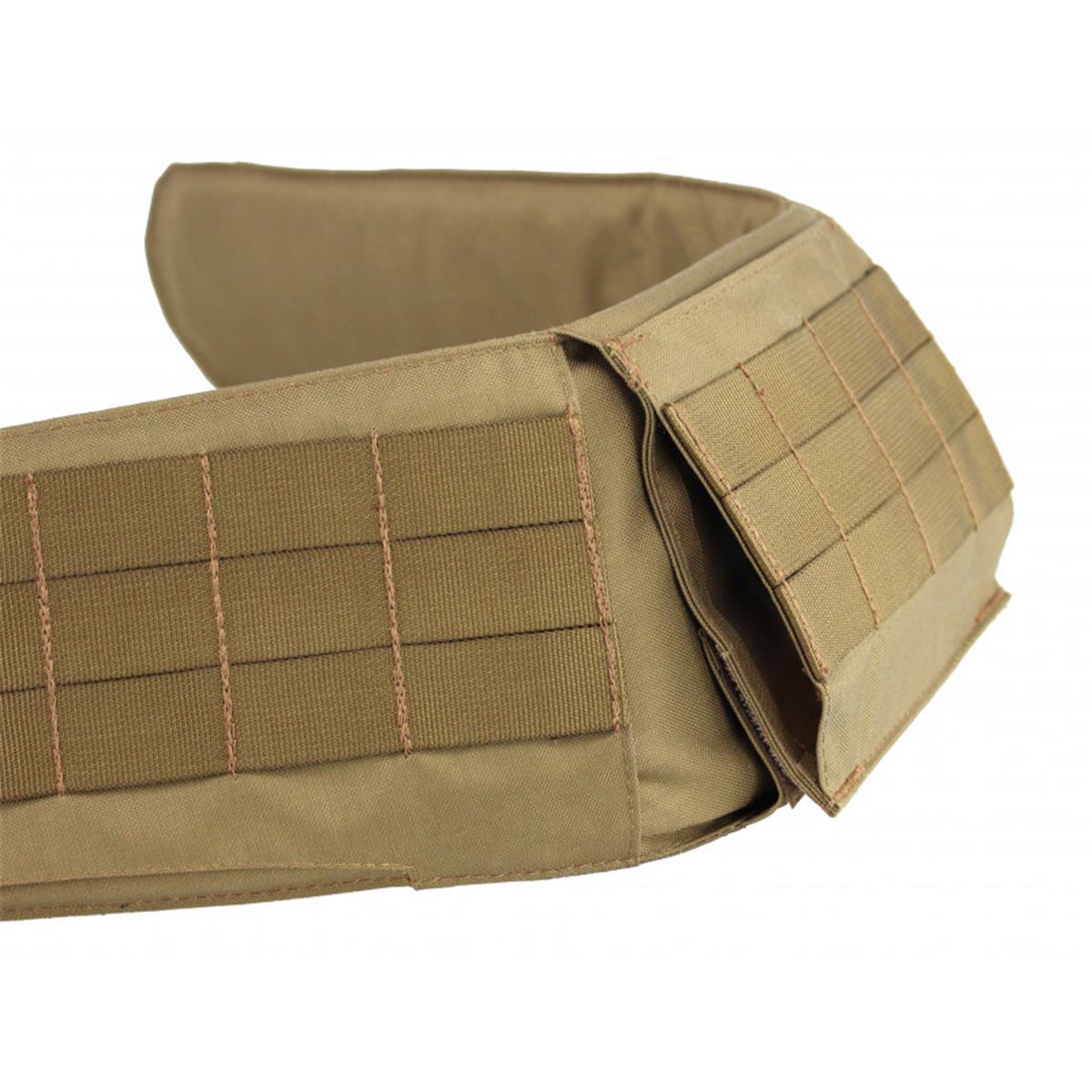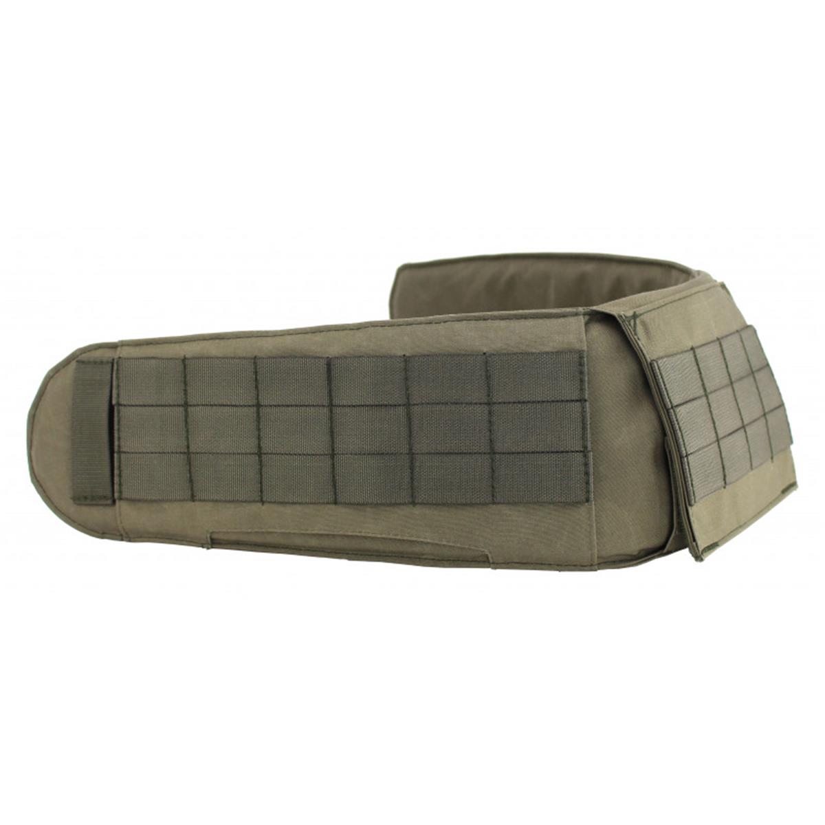 Der ergonomisch geformte War Belt wird inklusive NON Ballistik Einlagen ausgeliefert, welche zur Polsterung und zum besseren Tragekomfort dienen. Die Polsterung kann durch NIJ Level IIIA Weichballistik Einlagen ersetzt werden, was den Streitgurt zu einem War Belt macht.Der Streitgurt ist innen wie außen aus robustem Cordura® gefertigt.Die Seiten sind mit 6x3 MOLLE Schlaufen aus Gurtband versehen, sowie einer Öffnung für Subload und Beinholster.Je nach Größe stehen auf der Flap in der Mitte vier (S), fünf (M ) oder sechs (L) MOLLE-Schlaufen für weitere Ausrüstung zur Verfügung.In der Mitte des Streitgurts befindet sich das Klettfach, das für die Gewichtsübernahme an dem Plattenträger Vulcan III vorgesehen ist.Darunter liegend ist der Kanal, durch den der Innengurt oder eine Koppel geführt wird. Dieser Kanal dient zu Kraftverteilung auf die gesamte Fläche.Zum Einsetzen der Polster bzw der NIJ Level IIIA Ballistik wird die Flap ganz geöffnet und das Einschubfach verwendet.Dieser ergonomisch geformte Streitgurt / War Belt kann standalone getragen werden, bietet aber gerade in Verbindung mit der Gewichtsübernahme und dem Plattenträger Vulcan III große Vorteile.Das Gewicht des Plattenträgers wird zum Teil auf die Hüfte umgelenkt und schont somit den Rücken und erhöht den Tragekomfort und somit auch die Durchhaltefähigkeit des Anwenders.Die verwendeten Materialien entsprechen den technischen Lieferbedingungen der Bundeswehr oder den MIL-SPEC verschiedener anderer Armeen.Gewebe, Gurtband, Kunststoffteile sowie sämtliche Kurzwaren entsprechen militärischen Standards in Bezug auf Infrarotwerte sowie Zusammensetzung und Güte.