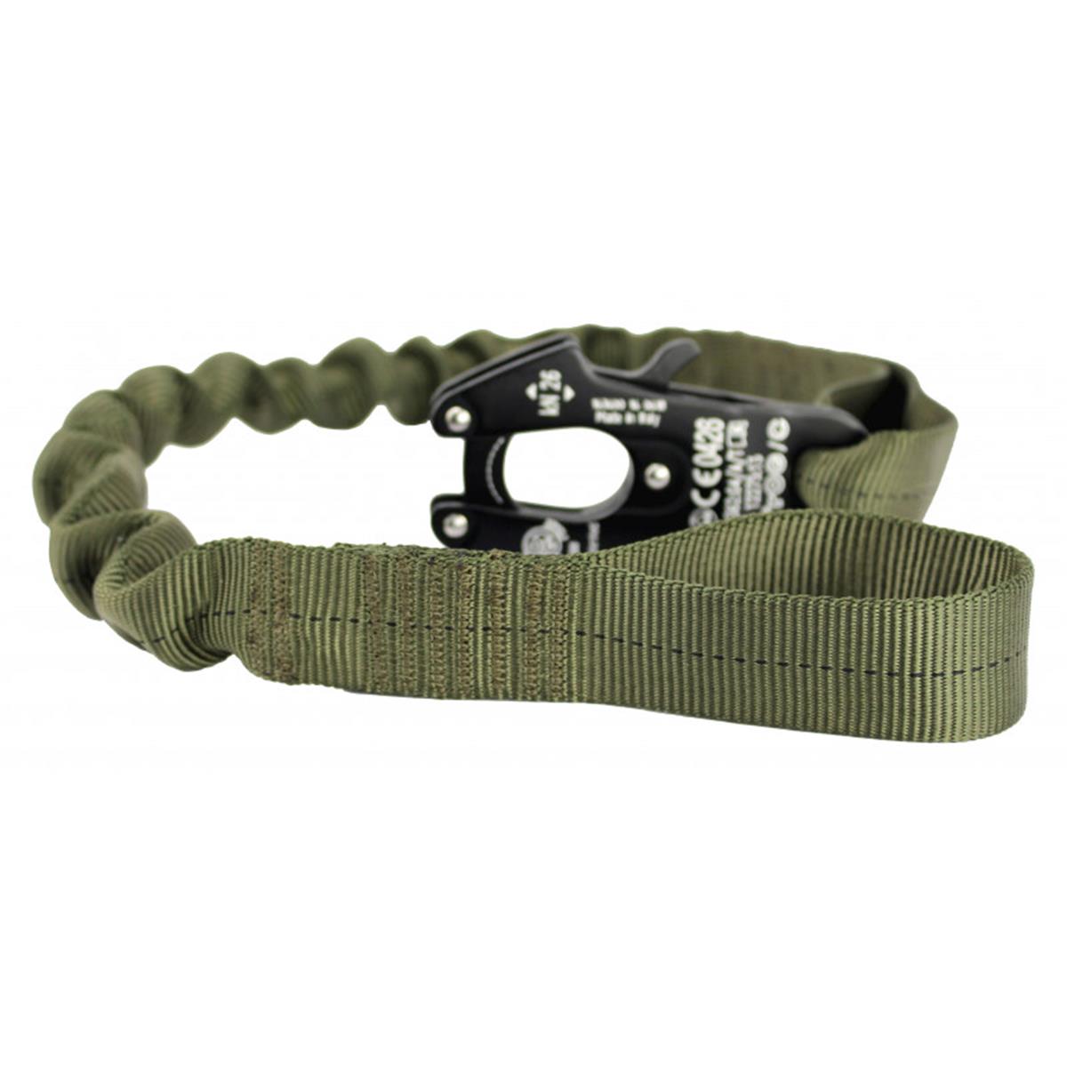 Dieses Lanyard ist vielseitig zur persönlichen Sicherung einsetzbar und kann an den unterschiedlichsten Anschlagpunkten in Gebäuden und Fahrzeugen verwendet werden.Ein weiterer Anwendungsbereich ist die Verwendung als Leine bzw. Kurzleine für den Diensthund.Die Elastizität des Tubular Gurtbandes dient als Puffer gegen ruckartige Bewegungen. Der Frog-Karabiner ermöglicht ein blitzschnelles Lösen, auch unter Zug. Das als Schlaufe ausgelegte Ende ermöglicht das Einschlaufen in einen Gürtel, Rigger Belt, Geschirr oder alternativ das Anbringen eines Karabiners zur Befestigung.